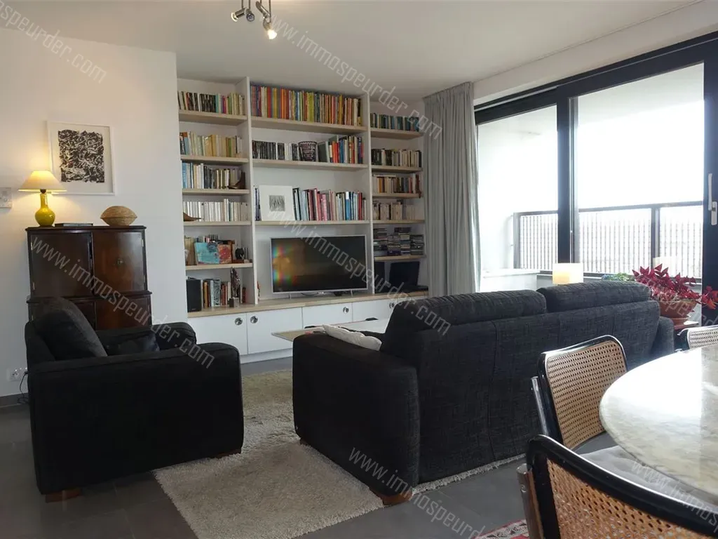 5 ème étage : Hall d'entrée (+/- 3.5m²), séjour (+/- 40m²) avec cuisine américaine équipée - four, taque vitro, hotte, évier, frigo, congélateur et lave-vaisselle - wc pour visiteurs, hall de nuit (+/- 6.5m²), salle de douche (+/- 1.5m²) - douche et évier - , buanderie, 2 chambres (+/- 14 et 10 m²)dont une avec salle de bain - bain, douche et wc -