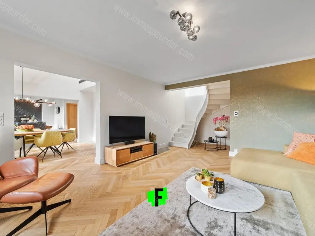 Dit duplex appartement bestaat uit een royale inkomhal met gastentoilet, een uiterst ruime eetplaats, een uitgeruste open keuken met een aansluitende berging en een ruime maar zeer gezellige woonkamer.