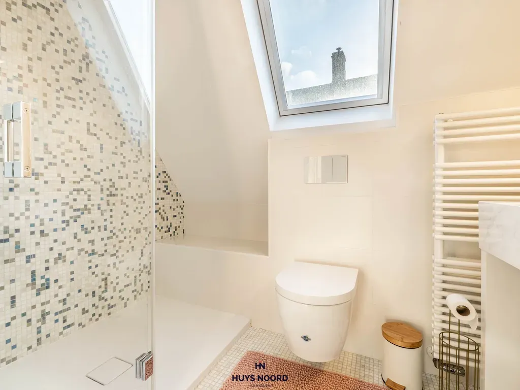 Op de nachthal bevindt zich een tweede badkamer voorzien van toilet, inloopdouche en enkel wastafelmeubel.