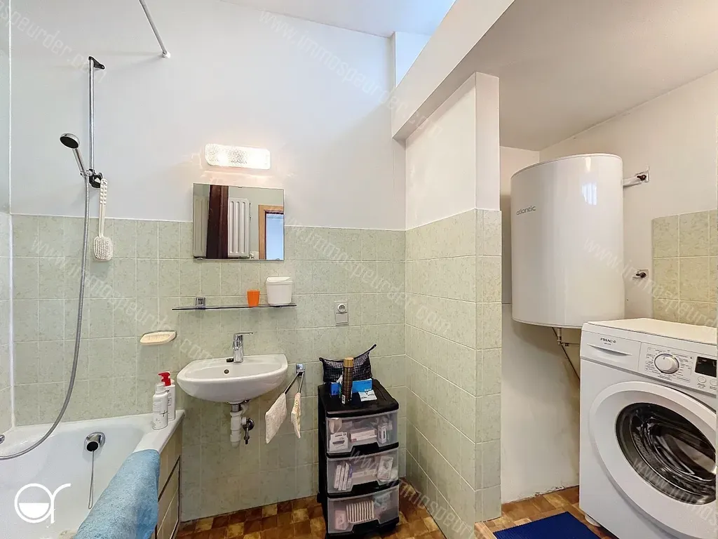 Badkamer met ligbad, lavabo, boiler. Ruimte voor wasmachine en droogkast