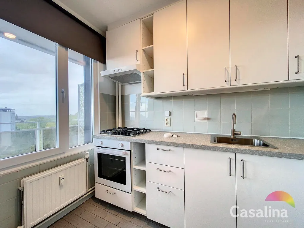 CASALINA Real Estate stelt te huur – lichtrijke studio van ±36 m² met terras, gelegen op de 8e verdieping en genietend van een prachtig panoramisch zicht.