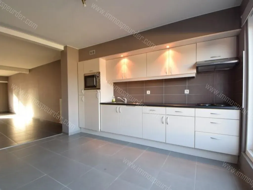 De inkomhal met apart gastentoilet geeft uit op de grote leefruimte met zithoek, eethoek en open keuken. De keuken is ingericht met fornuis, afzuigkap, oven en inbouw ijskast. De keuken geeft uit op het dakterras achteraan.