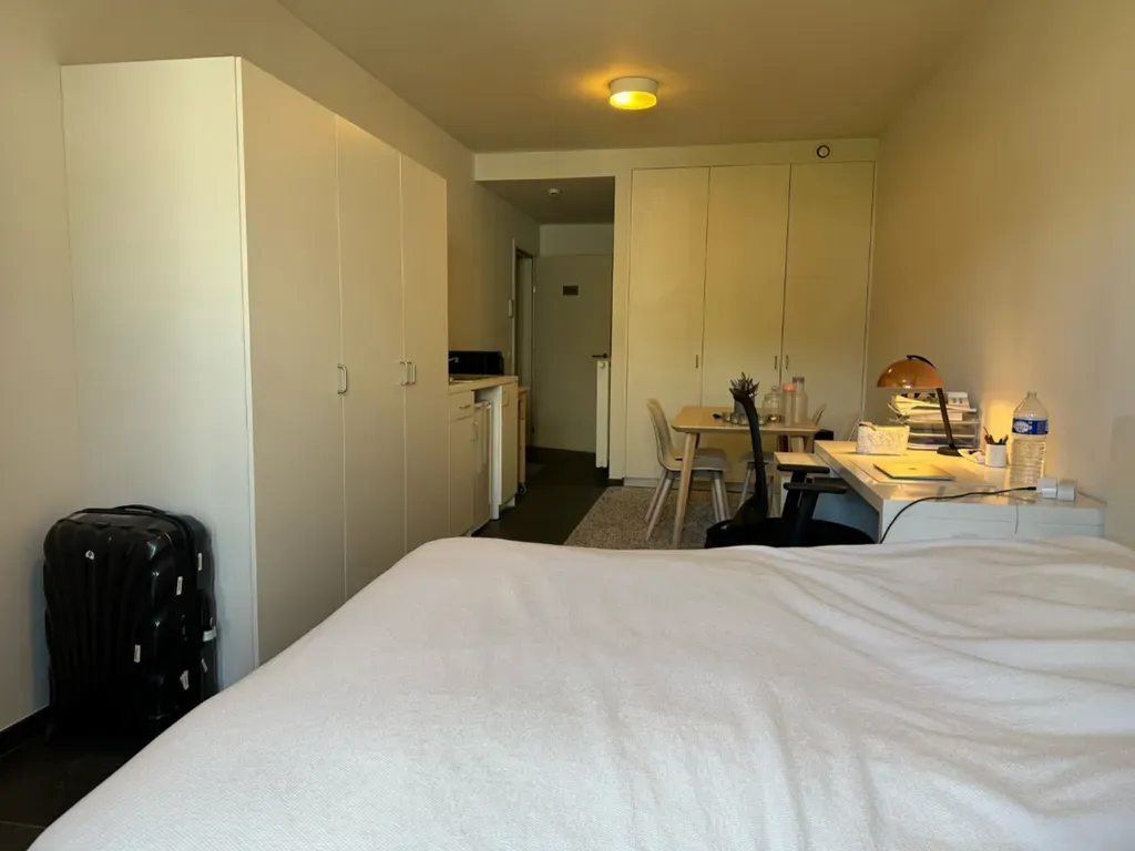 Naamsestraat 60/003 - 3000 Leuven - Luxueuze studio, van maar liefst 28 m² en met eigen privatief terras van 23m² in hartje Leuven nabij Grote en Oude Markt. Deze kamer bevindt zich op het gelijkvloers aan de achterkant en geniet van een prachtig uitzicht over de tuin. De studio heeft eigen sanitair (lavabo, wc en douche) en geïnstalleerde kitchenette. De studio zal ook volledig gemeubeld zijn met bureau, stoel, boekenrek, kast, dubbel bed, frigo en verduisterende rolgordijnen. Extra troef: Naast het hebben van uw eigen terras, mag elke student ook gebruik maken van de grote (7are!) gemeenschappelijke tuin. Top om te genieten of te studeren in het zonnetje, te midden het groen. Beschikbaar vanaf 15/09/2026. Huurprijs 870€ + 60€ provisie voor nutsvoorzieningen. Enkel voor studenten!