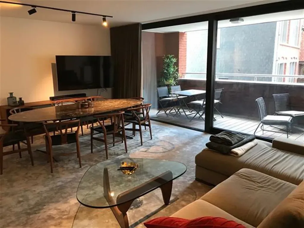Place Saint-Paul 2 - 4000 Liège - Superbe appartement meublé et équipé, d'une superficie de 100 m² possédant une agréable terrasse de 13 m². Cet appartement se compose d'un hall d'entrée, d'une cuisine complètement équipée et ouverte sur le salon, d'une buanderie avec machine à lessiver et séchoir, d'un WC, d'une salle de bains complète ainsi que de deux chambres à l'arrière. L'appartement se trouve dans un immeuble récent comprenant 14 appartements dans un clos calme dans l'hyper-centre. Cet appartement dispose également d'une cave . Poss. de louer un emplacement de parking pour une voiture moyenne (+100€/mois). Loyer : 1300€/mois - Provisions de charges communes : 90€/mois - Compteurs individuels pour l'électricité, l'eau et le gaz. Disponibilité à convenir. Renseignements et visites : Fabienne Pierrée 0477/77.90.90