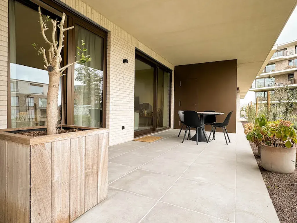 Dit appartement geniet van een stijlvolle moderne afwerking met kwalitatieve materialen en energiezuinige technieken: de volledige verwarming wordt voorzien via geothermie, een uiterst duurzaam systeem dat voorziet in verwarming én koeling, en bovendien resulteert in quasi geen verbruikskosten in combinatie met de aangesloten zonnepanelen.