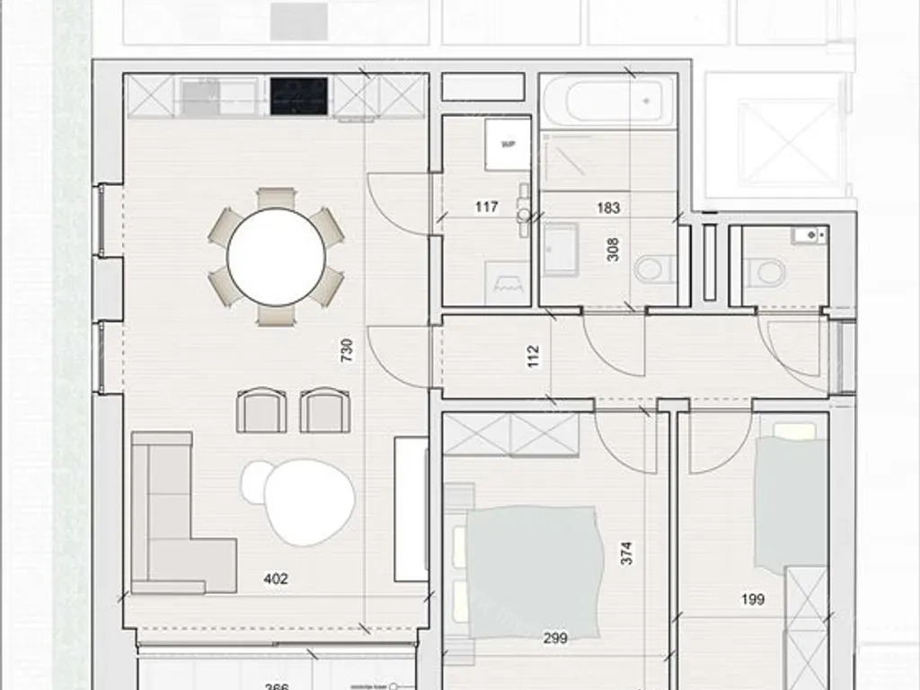Het appartement heeft twee slaapkamers, ruim terras, ondergrondse staanplaats en een privatieve berging.
