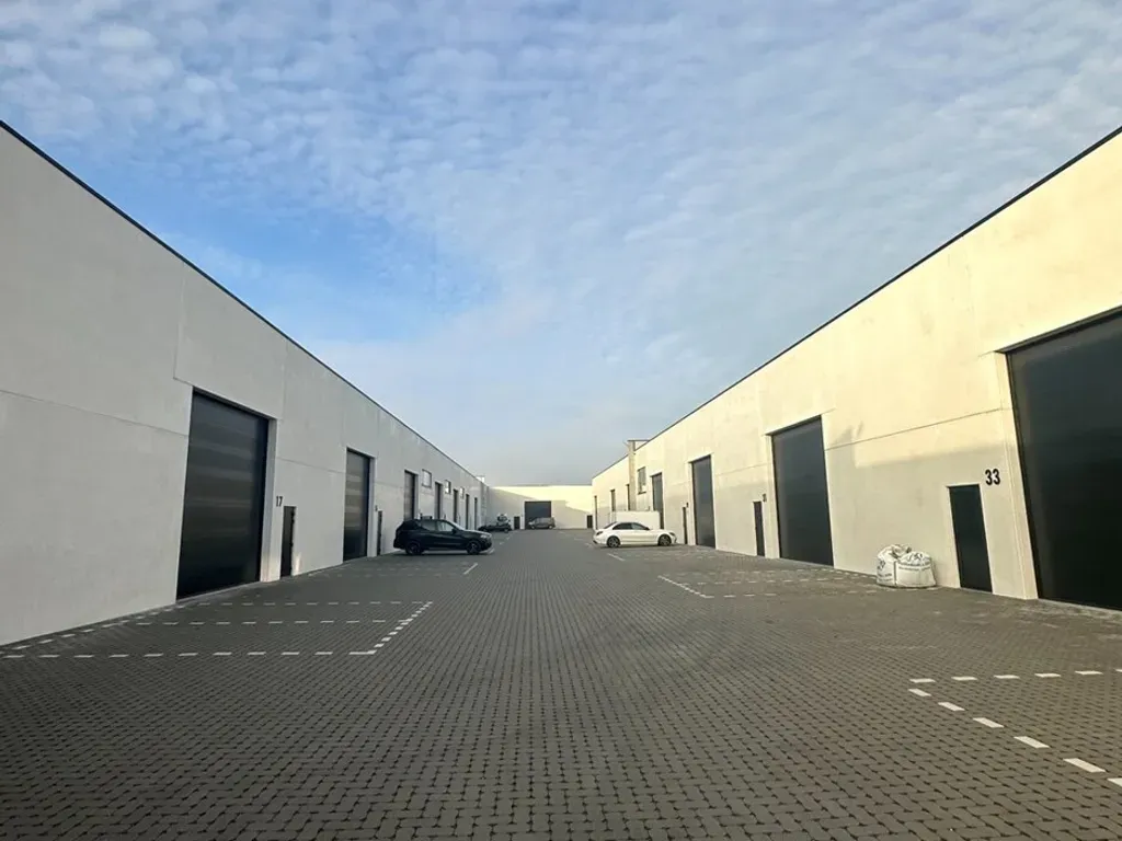 KMO-unit van 163m² op nieuwe site bestaande uit 36 KMO-units te Weelde. Het magazijn heeft een plafondhoogte van ca. 8m en een elektrische poort van 4.6m op 4.6m.
