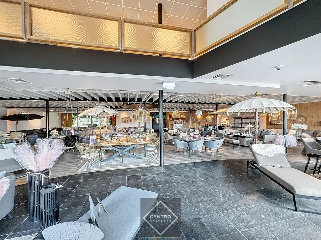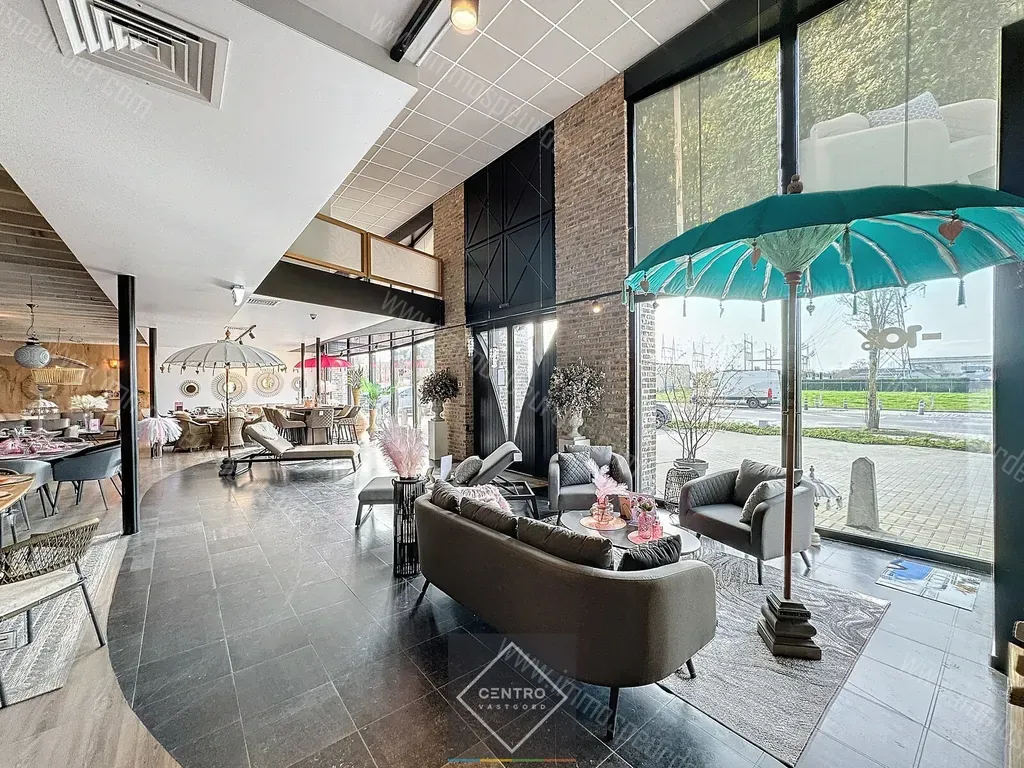 Gelijkvloers: Centrale inkom met automatische dubbele glazen deur - open winkelruimte - sanitair – geïnstalleerde keuken – opslagruimte achteraan voorzien van een sectionaalpoort – tuin.