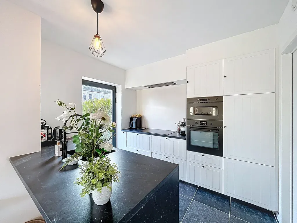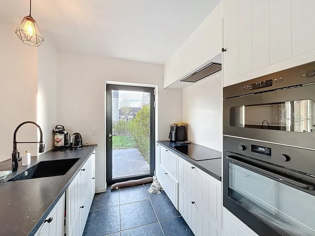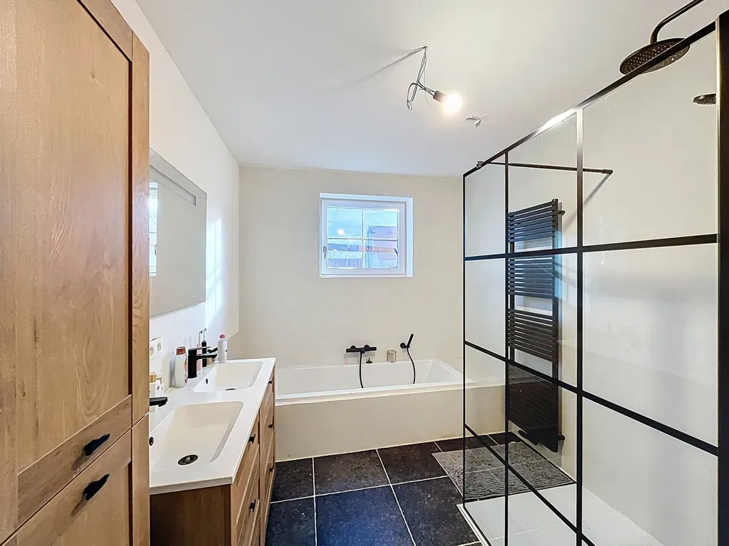 Inkom - gastentoilet - woonkamer - keuken voorzien van dubbele spoelbak, inductie kookvuur, dampkap, vaatwasser, frigo, oven en microgolfoven - berging - tuin - 3 slaapkamers - badkamer met dubbele lavabo, inloopdouche en ligbad - grote zolder die als berging kan dienen