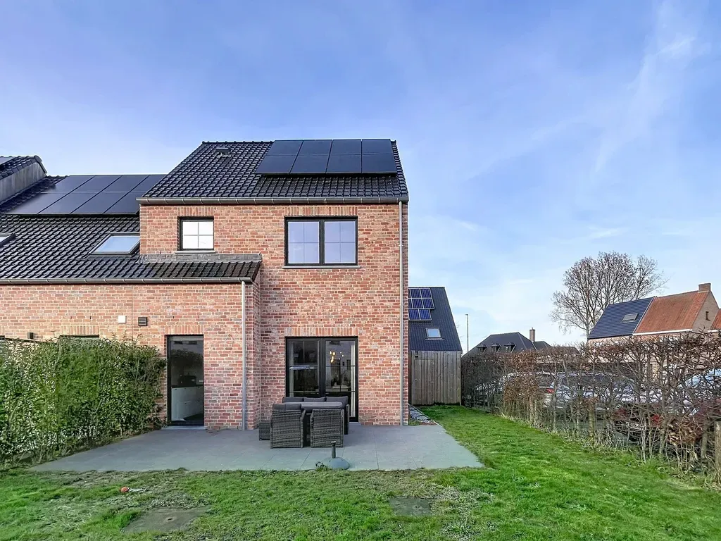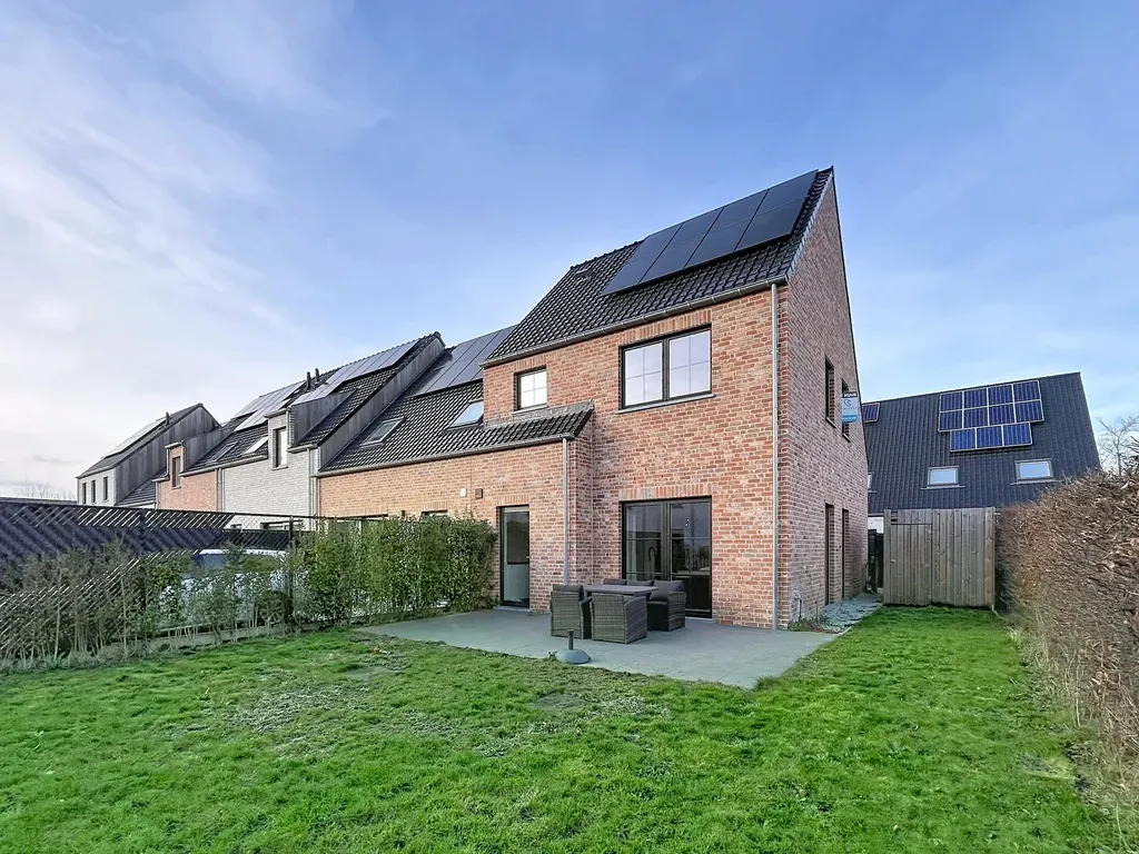 Deze nieuwbouwwoning is gelegen in een nieuwe wijk in het centrum van Adegem. Het pand beschikt over een tuin met aangelegd terras. Openbaar vervoer, scholen en detailhandel zijn in de nabije omgeving beschikbaar. Je geniet van een vlotte bereikbaarheid richting Maldegem en Eeklo.