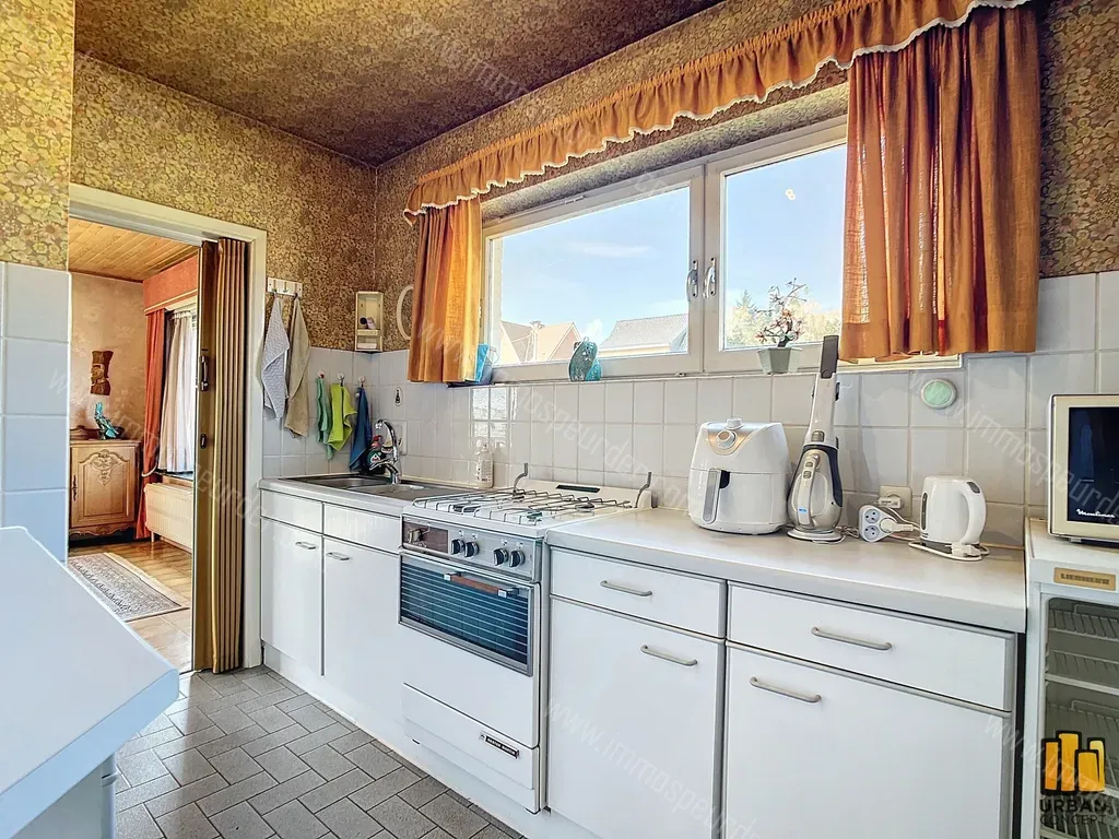 Brusselsesteenweg 157 - 1850 Grimbergen - OPTION* SOUS OFFRE* STOP VISITES*URBAN CONCEPT à le plaisir de vous proposer cette charmante villa de type Bungalow à rénover (de 1969) de +- 110 m² nets habitables sur un terrain de 386 m². La maison est saine et bien entretenue, elle se compose comme suit : un hall d'entrée avec vestiaire, w.c., accès vers le sous-sol, une cuisine de -+ 7, 20 m², un lumineux séjour de +- 28,40 m², un hall de nuit desservant une salle de bains et trois chambres (de +- 7,30 m², 8,90 m² et 11,60 m²). Au sous-sol : un hall de cave, un local buanderie, un espace chaufferie, et un spacieux garage de +- 26,70 m² ainsi que son emplacement de parking extérieur. Châssis anciens en double vitrage, sauf un grand châssis remplacé récemment en façade latérale côté salon, chauffage central, chaudière au mazout de 2001, une citerne d'eau de pluie, agréable jardin et aménagements possibles en façades latérales. La maison comprend également un grenier (sol en béton) permettant de nombreux rangements. Un MUST HAVE pour toute personne souhaitant une maison allant droit à l'essentiel, facile d'entretien et sans de nombreux escaliers à monter ou descendre. Proche des transports en communs (arrêt de bus en face de la maison direction Bruxelles).