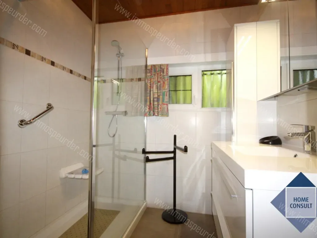 Woonkamer 29,8m² (tegelvloer) - eetkamer 7,1m² (tegelvloer) - veranda 11,7 (tegelvloer) - ingebouwde, gesloten keuken met elektrisch kookvuur 7,5m² (tegelvloer) - 3 slaapkamers (parket) 8,7m² / 12,2m² / 4,7m²(dressing) - 2 douchekamers met douchecabine, lavabo ingebouwd in meubel (waaronder één met toilet) - garage voor 2 auto's met elektrische poort 33,9m² - 7 parkeerplaatsen buiten - kelder 10m² (provisie) - terras (or W) 16m² - tuin met tuinhuis en omheind (or W).