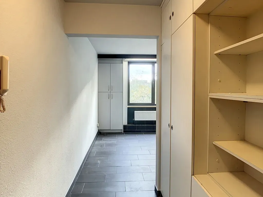 Brusselsestraat 178 - 3000 Leuven - De flat bestaat uit een inkomhal met een ingebouwde vestiairekast, woonkamer met open kitchenette (inclusief koelkast), aparte slaapkamer en een badkamer met douche/zitbad, wc en lavabo. De huurprijs bedraagt 620 euro per maand en provisie 155 euro per maand voor de algemene onkosten (incl. water en verwarming). Het verbruik van elektriciteit is individueel. Jaarlijks wordt er 50 euro gevraagd voor de brandverzekering (groepspolis). Er is de mogelijkheid om een autostaanplaats bij te huren aan 60 euro per maand. De flat is beschikbar vanaf 01/07/2026. Goed gelegen flat in het centrum Leuven (openbaar vervoer, winkels, ontspanningsmogelijkheden op wandelafstand) gelegen op de vierde verdieping. De residentie ligt recht tegenover de historische Sint-Jacobskerk, waar er op het Sint-Jacobsplein voldoende parkeermogelijkheid is.