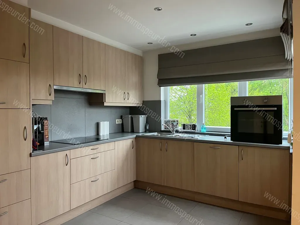 Woonkamer 25 m² op vloertegels (vloerverwarming) met aangrenzend de open en ingerichte keuken. Keuken voorzien van vaatwasser, 2-delige spoelbak, keramische kookplaat en dampkap.