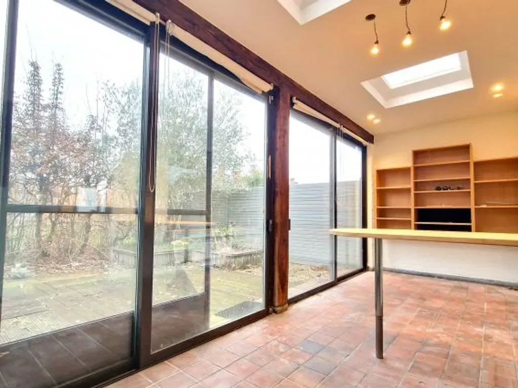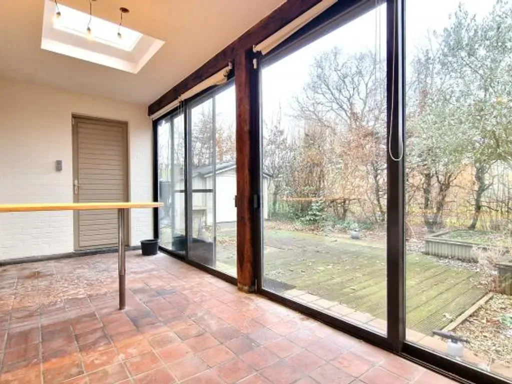 Inkomhal met toilet, leefruimte, open keuken, verandaatje, Garage, tuintje