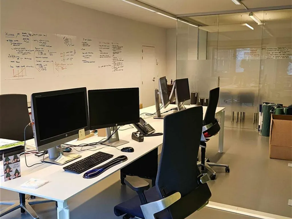 De kantoorruimte verkeert in zeer goede staat en is afgewerkt met een epoxy vloer.