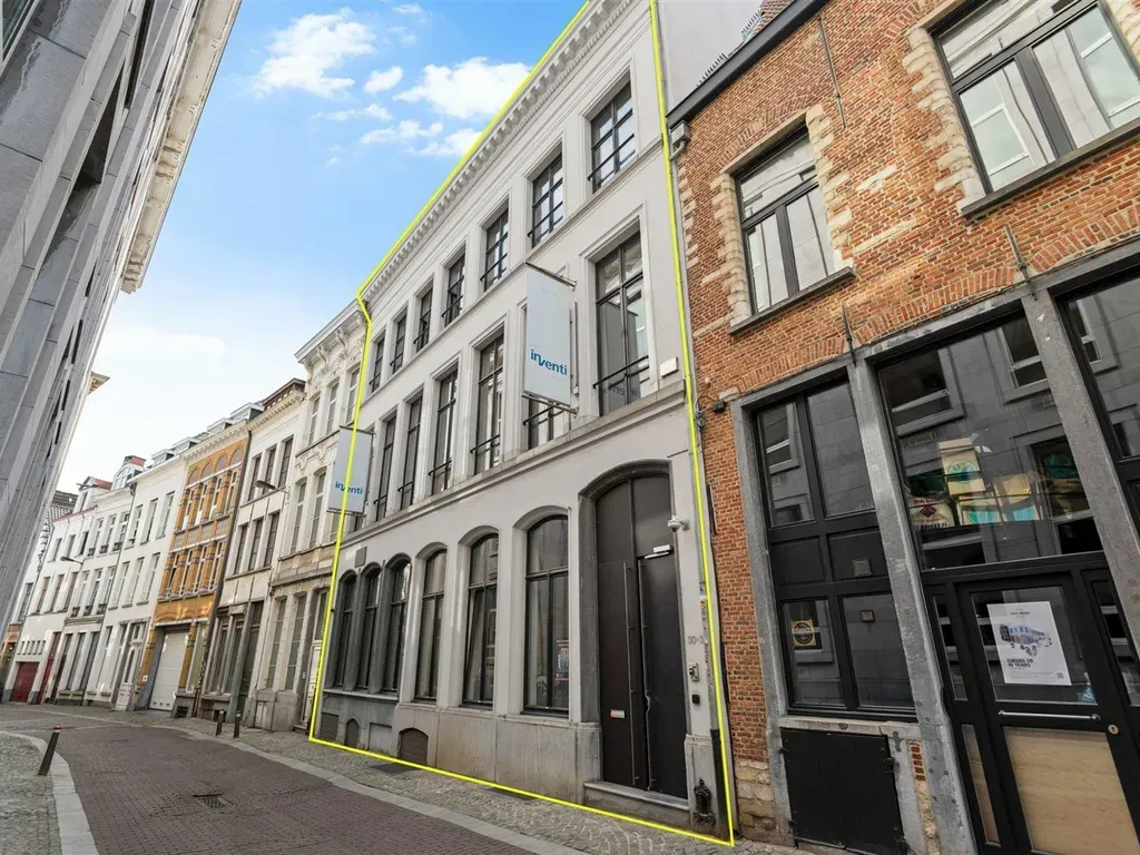 Oude Beurs 30-32 - 2000 Antwerpen - Dit volledig ingericht en bemeubeld kantoorgebouw te huur bevindt zich op een toplocatie aan de Grote Markt in Antwerpen. Op wandelafstand zijn er tien parkeerplaatsen beschikbaar. Het pand biedt een bovengrondse oppervlakte van circa 900 m², verdeeld over het gelijkvloers en drie verdiepingen.