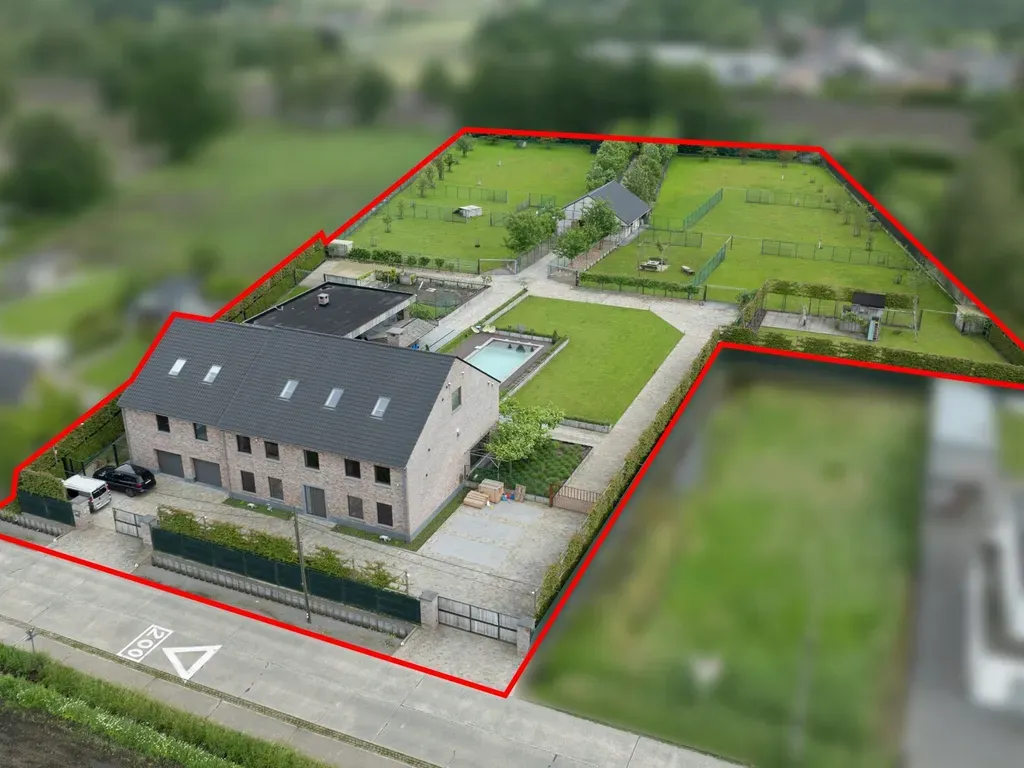 De zuidelijk gelegen tuin is een oase van ontspanning, compleet met een geautomatiseerd sproeisysteem, een verwarmd zwembad en een riant poolhouse van maar liefst 144m² (volledig onderkelderd). Voor dierenliefhebbers is er een schuur van 120m² met 5 paardenstallen en keurig omheinde weides achter de woning.