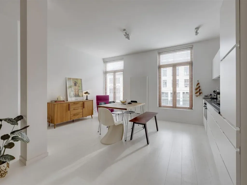 Jodenstraat 50/102 - 2000 Antwerpen - De ochtend begint hier met het zachte geroezemoes van de stad die wakker wordt rond de Wapper. Even langs de bakker, een koffie to go, en je staat zo weer binnen voor je eerste meeting of een rustige start van de dag. Alles ligt hier op wandelafstand, van de Meir tot een snelle lunch bij Cobra City. Achter die mooie, authentieke gevel op nummer 50 kom je binnen in een kleinschalig gebouw. Hier leef je in het centrum van de stad, op het ritme van de stad en heb je binnenkort een vernieuwd Wapperplein voor de deur. Parkings, metro, velostations zijn allen om de hoek. Shoppen? Op 5 minuten sta je in je favoriete winkel. Nadien een glaasje op de markt of pintje in de Varkenspoot! - Kleinschalig gebouw- Hartje van de stad- Momenteel verhuurd, ook ideaal als investering Het appartement zelf voelt ruim aan, dankzij de hoge plafonds en vele ramen die het licht vrij spel geven. Je stapt binnen en komt in de leaefruimte terecht, waar koken, eten en ontspannen naadloos in elkaar overlopen. Geen overbodige franjes, wel een logische indeling op een mooie oppervlakte, die gewoon klopt, hier voel je dat het goed zit. De twee slaapkamers liggen achteraan, lekker rustig, beide groot genoeg voor een volwaardig bed en een kast zonder dat je moet puzzelen. De badkamer is praktisch en verzorgd, precies wat je nodig hebt zonder gedoe. In de hal is nog een ingemaakte dressing, perfect excuus om opnieuw te shoppen. Alles samen een ruim tweeslaapkamer appartement dat zich makkelijk laat bewonen, of verhuren. Als je hier eens wil binnenwandelen, laat gerust iets weten. Het voelt hier sneller vertrouwd dan je zou denken. stad@sinjoor.be of bel ons op 03 283 05 00