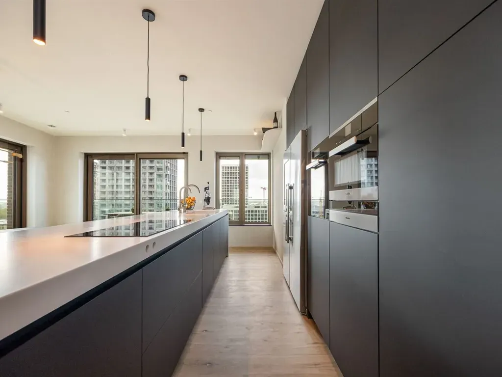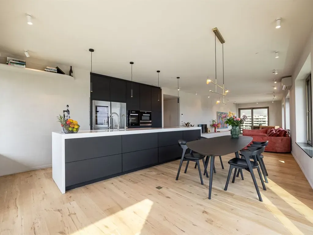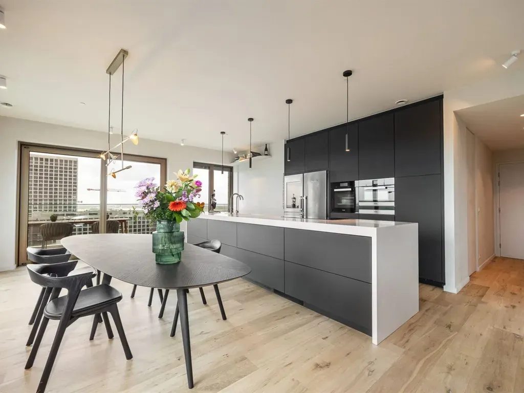Jan Vanhoenackerstraat 16/1005 - 2000 Antwerpen - Wilt u echt uw valiezen neerzetten en beginnen wonen? Zegt het u wel iets om te kijken hoe de boten langs het water varen? Ben je fan van toparchitectuur? Lees dan vooral verder. Dit once-in-a-lifetime appartement ligt op de 10e verdieping van C.F. Møller en BRUT's SCHELDEZICHT. - XXL-Terrassen (Zuidgericht & Noordgericht & Oostgericht) - High end afwerking - Skyline zichten op de Schelde en de Sinjorenstad U vindt dit appartement op de tiende verdieping. Perfect voor ver-zichten maar nog voldoende connectie met de beweging op straat. De eigenaar heeft de standaard oplevering geëleveerd naar een nieuw en high-end-niveau. Denk keuken met mega-kookleiland, Quooker, Miele-toestellen,..air-conditioning, Decoratieve schilderstechnieken,.. alles voor het ultieme woonstgenot. Binnenkomen, ingemaakte kasten & apart funky geschilderd gastentoilet, Make-up spiegelhoekje. Toegang tot de eerste slaapkamer met eigen badkamer. Dromen van de bootjes terwijl je ze ziet varen. Achteraan ligt een tweede slaapkamer eveneens met badkamer en tweede toilet. Verder nog een netjes verstopte wasberging. En kunnen we het nu hebben over de terrassen? Een terras aan de kant van de stad. Voor je ochtendkoffie met zichten op alle Antwerpse eyecatchers. Een terras aan de oostkant over de gehele breedte van het appartement. En last but not least een terras op de zuidkant. Plaats voor een flinke tafel en buitensalon. 3.2.1. Vakantiemodus AAN..maar dan thuis. Extra's : daktuin, wasruimte, fietsenatelier, gemeenschappelijke ruimte op verdieping 4. Vraag achter onze parking mogelijkheden. Bel ons nu om samen te gaan genieten van dit uitzicht! 03 283 05 00 - george@sinjoor.be