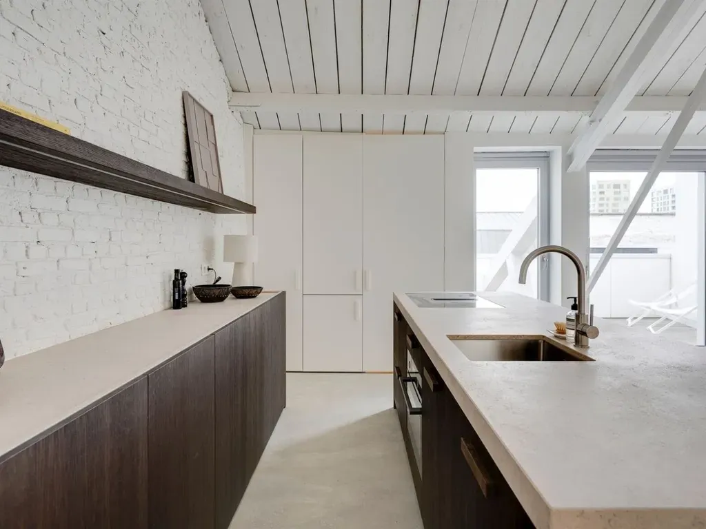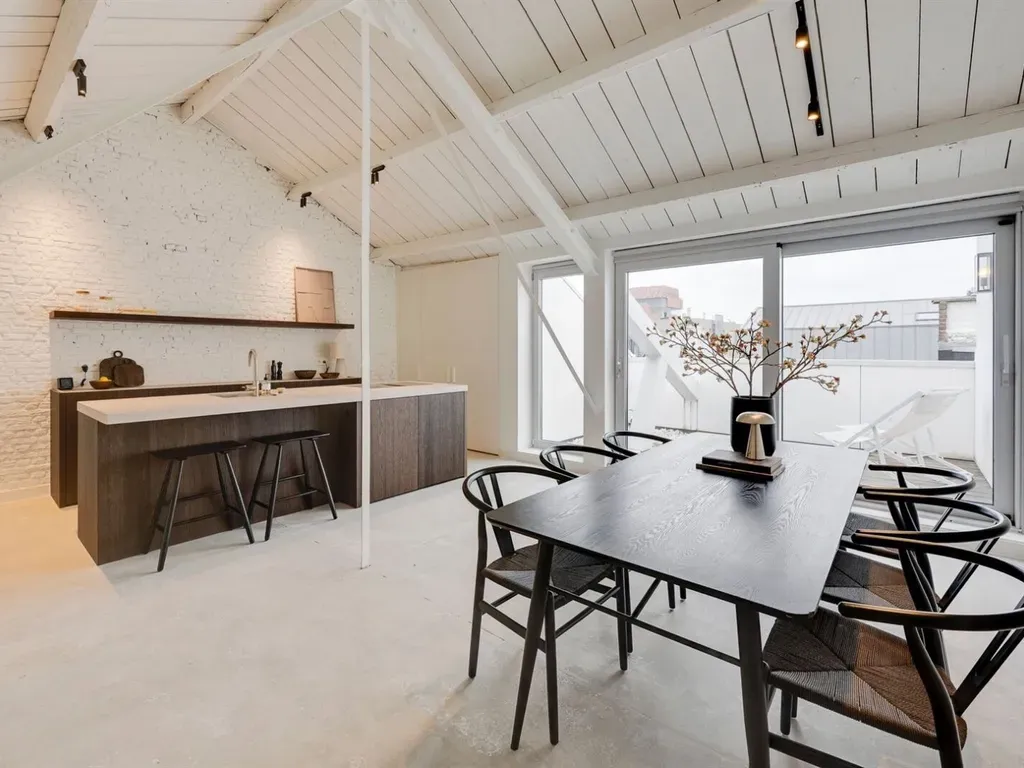 Bordeauxstraat 7A/403 - 2000 Antwerpen - Iconische loft aan het begeerde Eilandje Wonen met karakter in een industriële setting op een toplocatie. Welkom in deze uitzonderlijke, volledig gerenoveerde loft van ca. 173m², waar ruimte, design en hedendaags comfort centraal staan. Een plek waar elke vierkante meter niet alleen nuttig is, maar ook sfeervol en authenticiteit uitstraalt. Denk aan hoge plafonds, grote raampartijen en natuurlijke materialen. Hier leef je op het bruisende Eilandje, om de hoek van het Willemdok en de Napoleonkaai. Hier ben je omgeven door architectuur, gastronomie, de gezelligste terrassen en wandel je zo de stad in. Waarom je hier wil wonen- Iconische loftsfeer met industriële accenten en veel licht- Terras met veel privacy en namiddag/avondzon- Ruime masterbedroom - 1 ruime gastenkamer- 2 badkamers- Mogelijkheid tot aankoop autostaanplaats (€ 45.000) De loft ligt op de hoogste verdieping van een oud pakhuis. Er is een royale leefruimte met trap naar de open leefkeuken. Het kloppend hart van de loft. Open, luchtig, licht en met toegang naar het terras. De op maat gemaakte keuken werd voorzien van alle toestellen en werd met mooie materialen afgewerkt. De betonvloeren sluiten perfect aan bij het industriële karakter van de loft en de natuurlijke materialen in de keuken. Er is een masterbedroom met een eigen badkamer en een tweede ruime gastenkamer met een eigen badkamer. Wat heb je nog meer nodig? Dit is niet zo maar een appartement. Dit is een echte lofte mét karakter en een zee van ruimte. Plan je bezoek via https://www.sinjoor.be of bel ons voor meer informatie 03 283 05 00.
