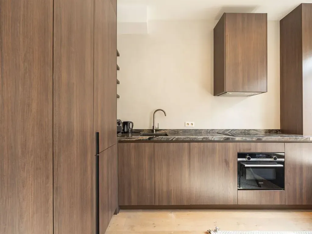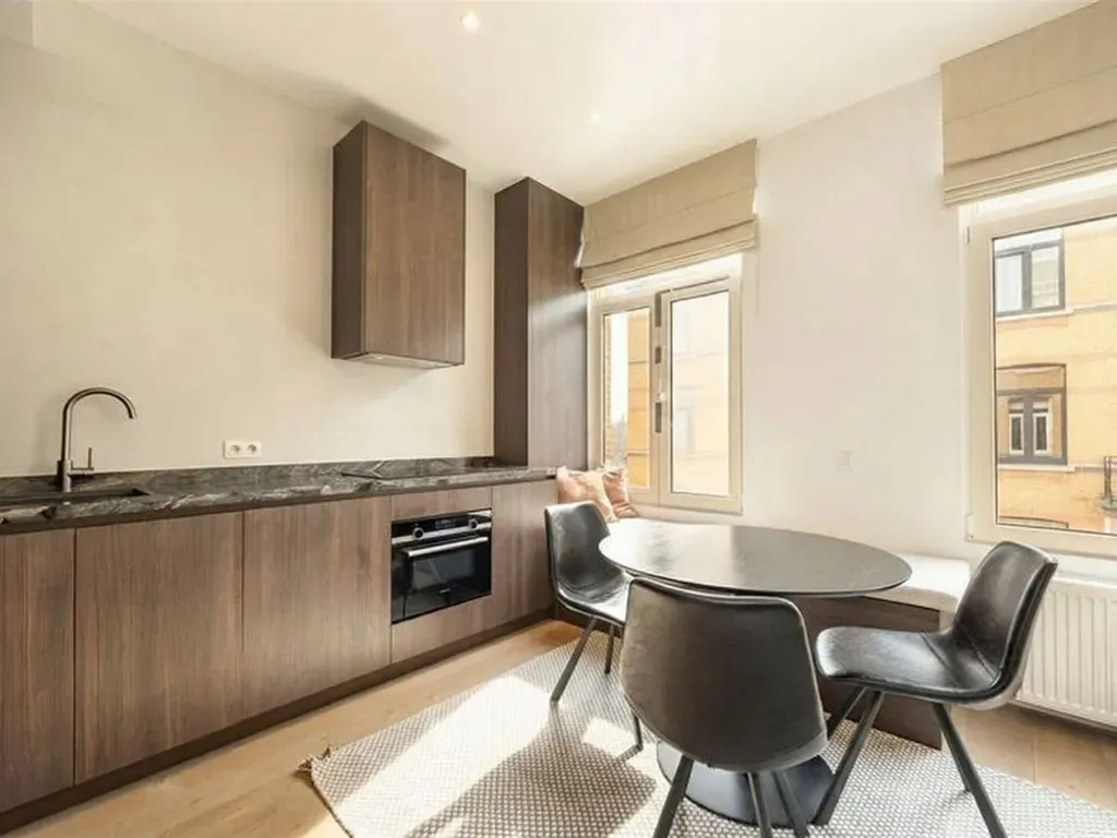 • 51 m² woonoppervlakte met praktische indelingEens je binnenkomt is er super veel lichtinval. Grote ramen zorgen voor een open gevoel en maken van de leefruimte een aangename plek om thuis te komen.De open keuken is praktisch ingericht, met warme materialen die het geheel karakter geven. Alles zit waar het moet, zonder dat het druk oogt. Ideaal voor dagelijks gebruik, maar ook gewoon een fijne plek om even te blijven hangen.De slaapkamer is afgescheiden met een glazen wand, wat zorgt voor een open gevoel zonder aan rust in te boeten. Aansluitend bevindt zich de badkamer met een mooie inloopdouche en een strak wastafelmeubel. Netjes afgewerkt, in lijn met de rest van het appartement.Hier woon je met zicht op het park en de stad op wandelafstand. Meer heb je soms niet nodig.Ontdek het zelf en plan je bezoek via https://www.sinjoor.be of 03 283 05 00