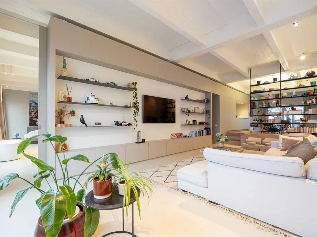 • Mogelijkheid tot ruime inpandige autostaanplaats (€55.000)Bij het binnenkomen zet de hoge plafonds en het overvloedige licht meteen de toon.De inkomhal met vestiairekast en gastentoilet leidt naar een tweede slaapkamer — perfect als gastenkamer of kantoor.De royale leefruimte vormt het hart van de loft: open, warm en gelaagd.