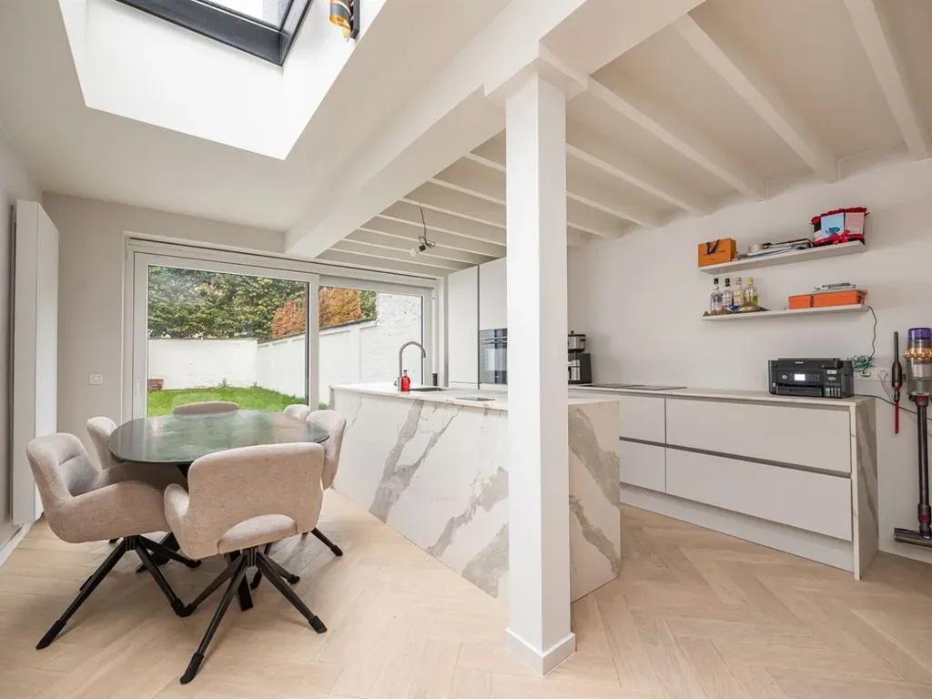 Stijlvol en kwalitatief gerenoveerd. - EPC A- Totaalrenovatie plug and play- Zonnepanelen - Goed voor eigen bewoning of verhuren. (Vandaag zijn beide units verhuurd.) Indeling gelijkvoers: Open leefruimte met vernieuwde keuken & kookeiland. Apart toilet & berging, slaapkamer met badkamer ensuite.