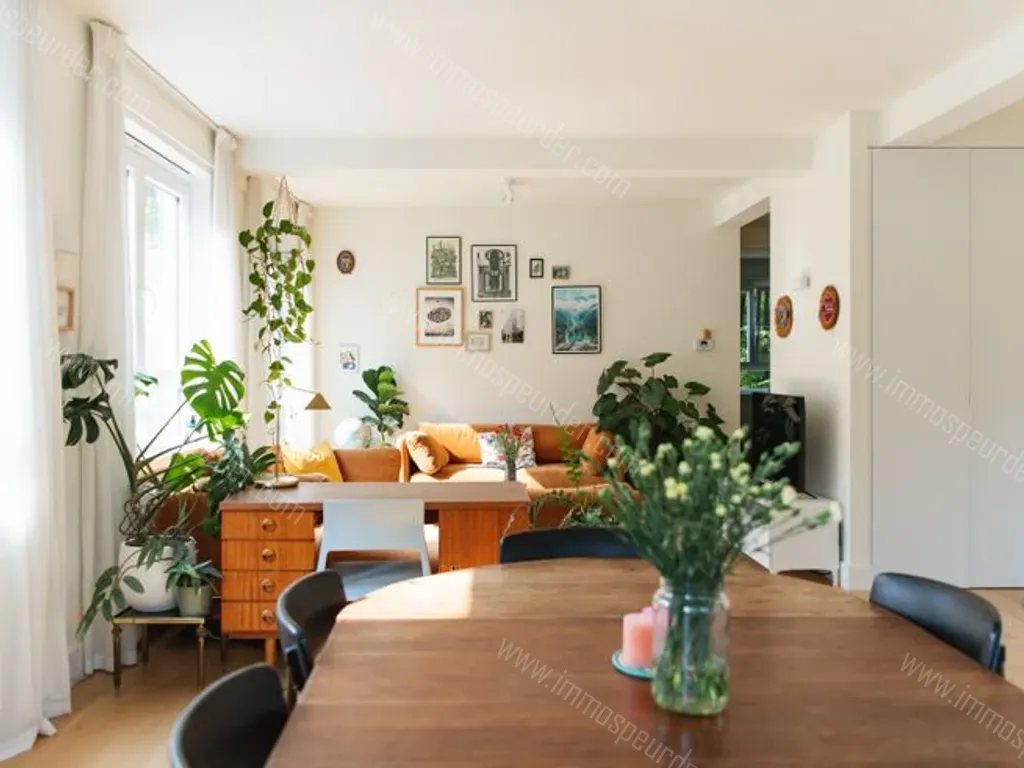 Je betreedt het appartement via de lichtrijke woonkamer met houten vloer, hoog plafond en toegang tot het ruime terras. Aansluiten kom je in de open keuken die uitgerust is met alle hedendaagse comfort.