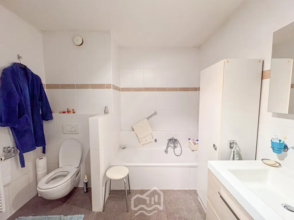 Indeling: Inkom - toilet - ruime living met halfopen, geïnstalleerde keuken - nachthal - badkamer met ligbad & douche - ruime berging met cv & aansluiting voor wasmachine en droogkast - slaapkamer 1 - slaapkamer 2 - ruim achterterras. Mogelijkheid om garagebox aan te kopen onderaan de residentie à € 55.000,00.