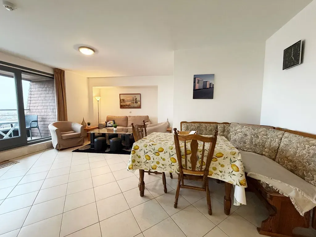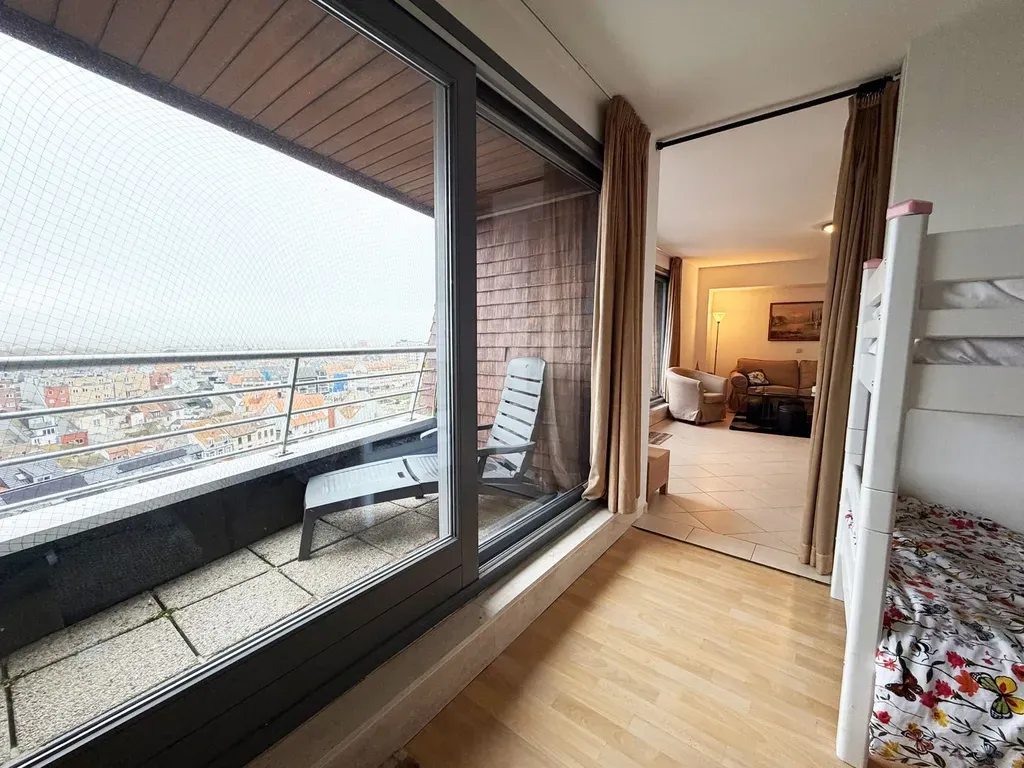 Zeedijk 96 - 8370 Blankenberge - Gemeubelde appartement gelegen op het twaalfde verdiep met zicht op zeedijk, strand en zee te Blankenberge. Uiterst centraal gelegen op wandelafstand van winkels, openbaar vervoer, recreatiemogelijkheden….
