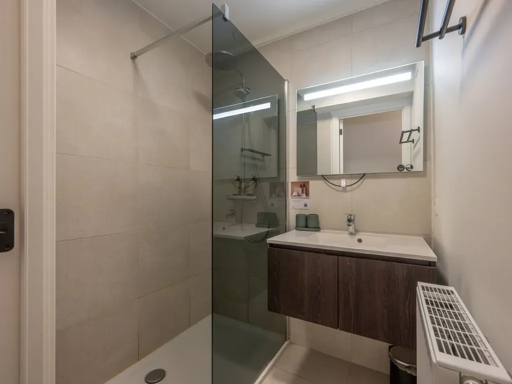 Indeling als volgt: inkomhal, gezellige woonkamer met schuifraam naar het terras en lateraal zeezicht, open en volledig ingerichte keuken, aparte berging/wasplaats, badkamer met inloopdouche en wastafel, apart toilet en slaapkamer met ingemaakte kasten.