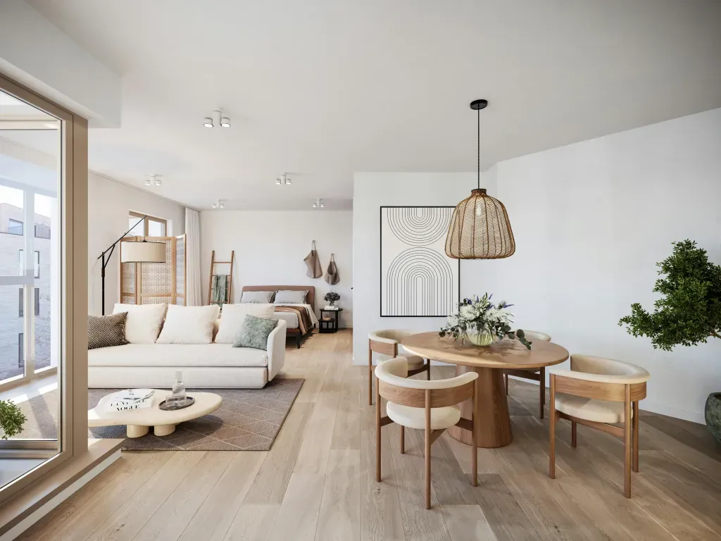 Kolenkaai 37 - 8000 Brugge - Project Kolenkaai is gelegen op een droomlocatie aan het kanaal Gent-Brugge-Oostende. De oppervlakte van maar liefst 10.000 m² biedt ruimte voor energiezuinige appartementen, huizen, handelsruimtes en heel wat groen. Kolenkaai, da’s een prachtig staaltje architectuur met een hoge ambitie in duurzaamheid. Kolenkaai staat voor ruim wonen in alle comfort en stijl. De kwalitatieve en hedendaagse afwerking met oog voor detail zie je én voel je elke dag. Voor Kolenkaai werd een Energy Service Company (ESCO) opgericht. Daarmee passen we innovatieve en duurzame hernieuwbare-energietechnieken toe. Zo worden de gebouwen verwarmd en passief gekoeld met warmtepompen die hun energie onder andere uit een BEO-veld halen. Daarnaast plaatsen we zonnepanelen op de daken en zijn alle parkeerplaatsen laadpaalready. Type G0104: - inkomhal met vestiaire - toilet - badkamer met inloopdouche en lavabomeubel - slaapkamer 1 - slaapkamer 2 - leefruimte met open keuken, berging en terras dat uitkijkt op de binnentuin - ondergrondse parkeerplaats (laadpaal ready) Contacteer vandaag nog jouw Dewaele makelaar rmatie over dit unieke nieuwbouwproject te Brugge. of Bestuursmaatregelen in het maatregelenregister: nee