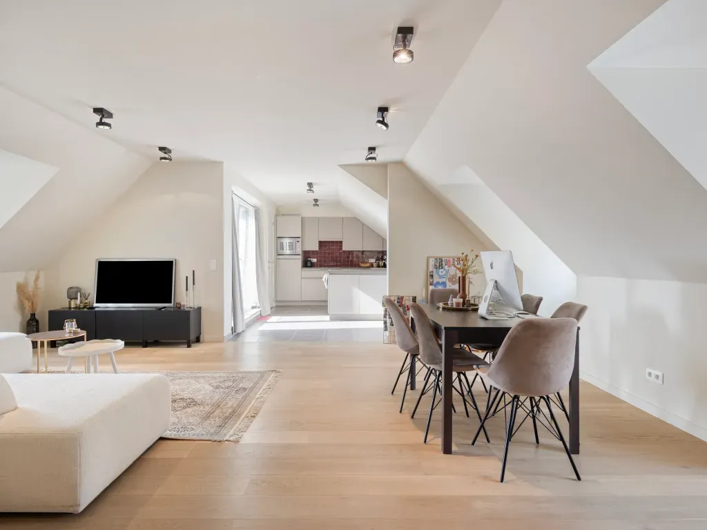 Hoefijzerlaan 43 bus 03.01 - 8000 Brugge - Dit prachtig afgewerkte appartement te koop in Brugge combineert modern comfort met een uitstekende ligging nabij het groene Visartpark. Dankzij de hoogwaardige materialen en de overvloedige lichtinval geniet u hier van een uitzonderlijke woonkwaliteit. Dit vastgoed onderscheidt zich door een uitmuntende energieprestatie (EPC A) en een conforme elektrische keuring, wat garant staat voor zorgeloos wonen. De centrale ligging in Brugge zorgt ervoor dat u vlot toegang heeft tot belangrijke invalswegen, terwijl de nabijheid van het openbaar vervoer en lokale winkels het dagelijkse leven vergemakkelijkt. Bovendien beschikt het pand over een praktische fietsenberging en een privatieve autostaanplaats, een enorme troef in deze regio. Indeling: