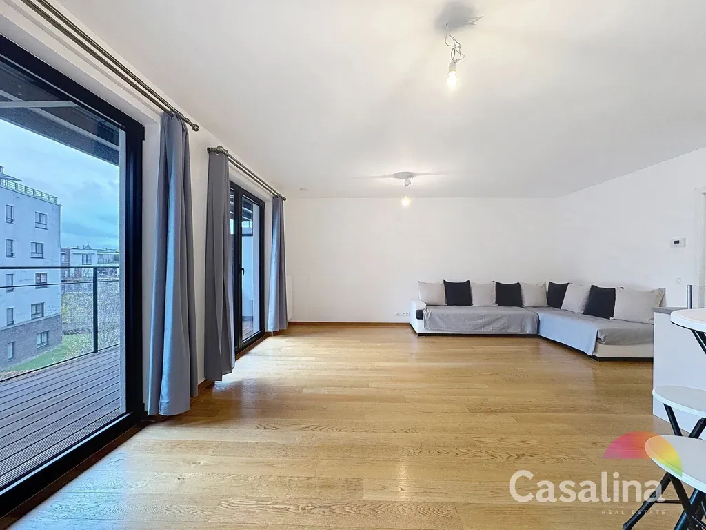 Casalina Real Estate heeft het genoegen u exclusief te koop aan te bieden: een prachtig 3-slaapkamerappartement gelegen op de 3e verdieping, met een ruim privatief achterterras, een kelder en een parkeerplaats in de ondergrondse verdieping.