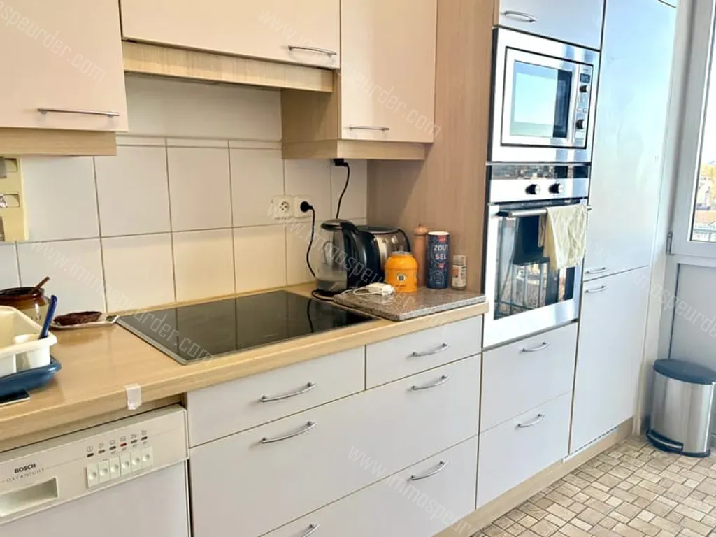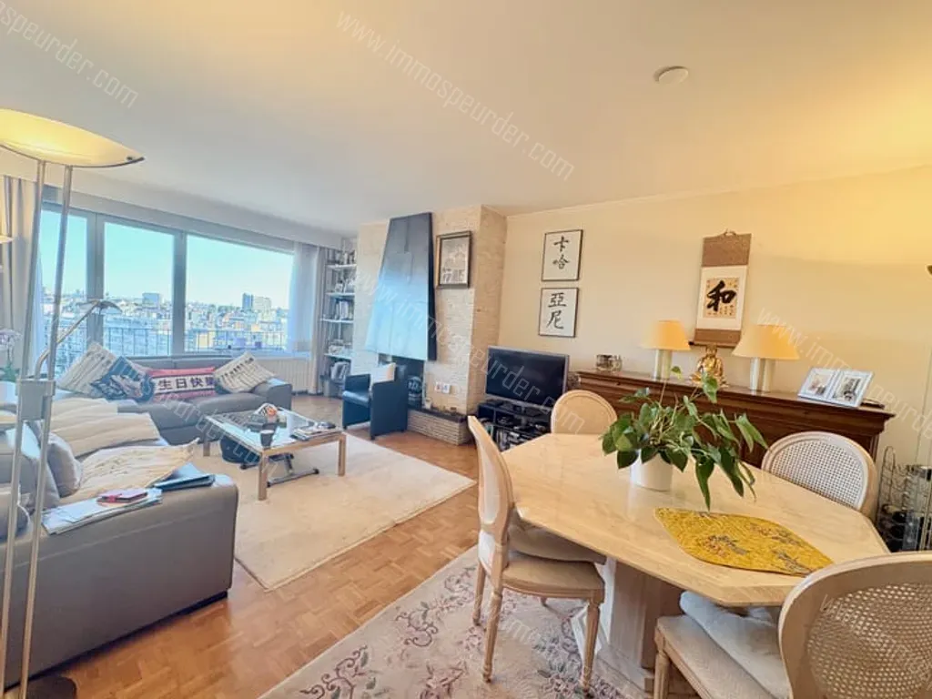 Mail 7 - 1083 Ganshoren - Ganshoren , proximité Basilix. Appartement de +/-90m2 avec superbe vue sur Bruxelles,situé au 8eme étage d un immeuble bien entretenu. Il se compose :hall d’entrée avec vestiaire,spacieux et lumineux séjour de 30m2 donnant accès à une grande terrasse de 14m2 exposée au sud-est,cuisine super équipée, hall de nuit desservant 2 chambres (14&12 m2) salle de douche ,toilettes séparée,espace buanderie,nombreux rangements.Doubles vitrages.Cave. PEBE. Proche des transports commerces écoles. Possibilité d acquérir un grand box(30000€).