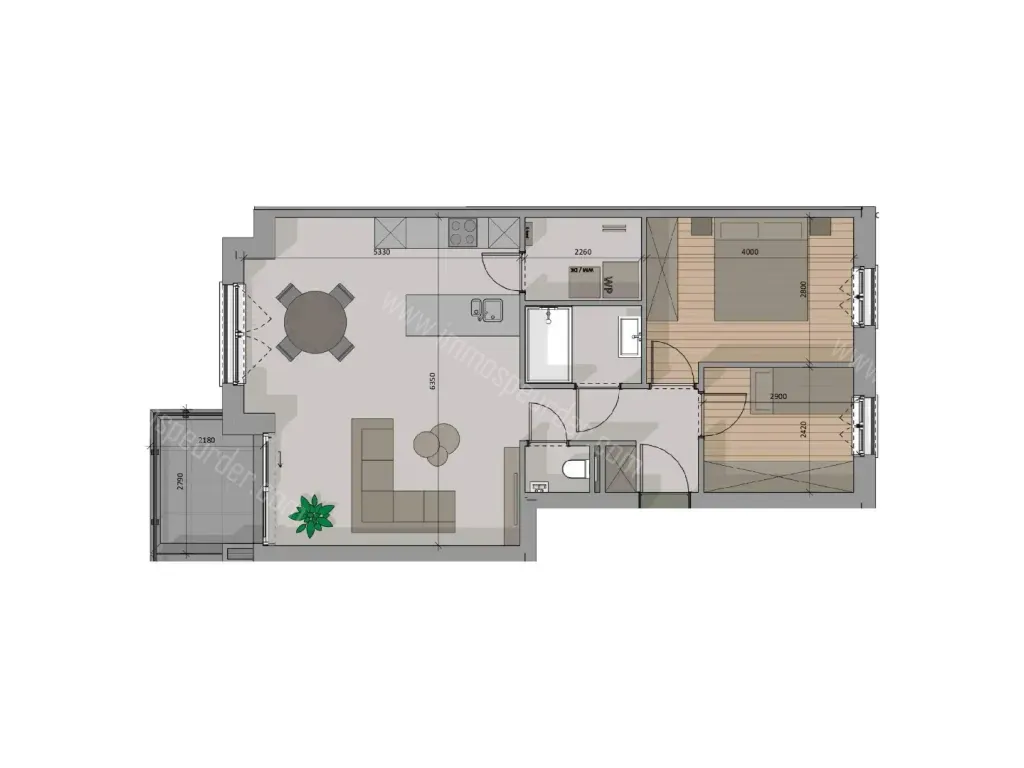 Onderstraat 33-102 - 9890 Gavere - Ruim 2 slpk-app centrum Gavere Via de inkomhal, kan u het toilet, de badkamer en de twee ruime slaapkamers bereiken.