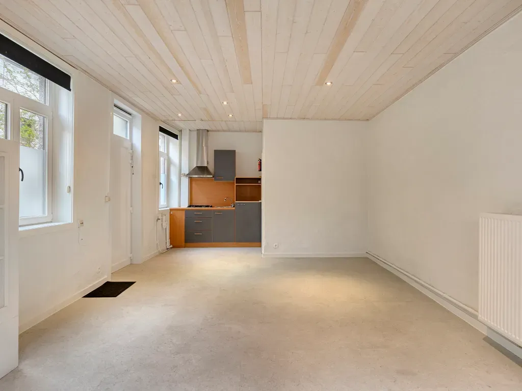Krijgsgasthuisstraat 71 - 9000 Gent - De Krijgsgasthuisstraat heeft een rijke geschiedenis als de voormalige Hospitaalstraat bij het Militaire Hospitaal. Het is een bijzonder rustig plekje te midden van de stad. Je geniet hier van de ideale combinatie: ongeziene stilte, en toch alles binnen handbereik. De studio zelf is gelegen op het gelijkvloers en vormt de perfecte opportuniteit voor wie op zoek is naar een eerste eigen stek of een slimme investering. Binnenin vind je een ruime, lichtrijke leefruimte die slim kan worden ingericht met een afgescheiden slaaphoek. De ruimte sluit aan op de keuken en een spiksplinternieuwe badkamer. De studio deelt het terras en kan gebruik maken van de zitbanken en van een gemeenschappelijke fietsenberging. Hoewel het EPC een label D vermeldt, is dit in de praktijk een zeer zuinige studio met een opvallend laag reëel verbruik. Dit is te danken aan de kwalitatieve HR-dubbele beglazing, de vernieuwde voordeur en de hoogrendement condensatieketel (2019), die zorgen voor een optimaal comfort zonder hoge energiefacturen. Tot slot is de elektrische keuring van de studio conform! De AI-visualisaties zijn bedoeld als inspiratie. Er werd geen rekening gehouden met technische specificaties, stedenbouwkundige voorschriften of de concrete mogelijkheden tot realisatie. Bestuursmaatregelen in het maatregelenregister: in aanvraag