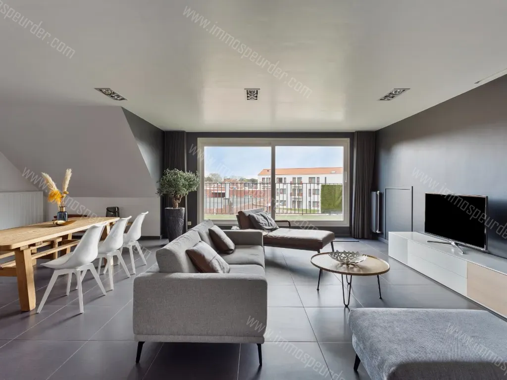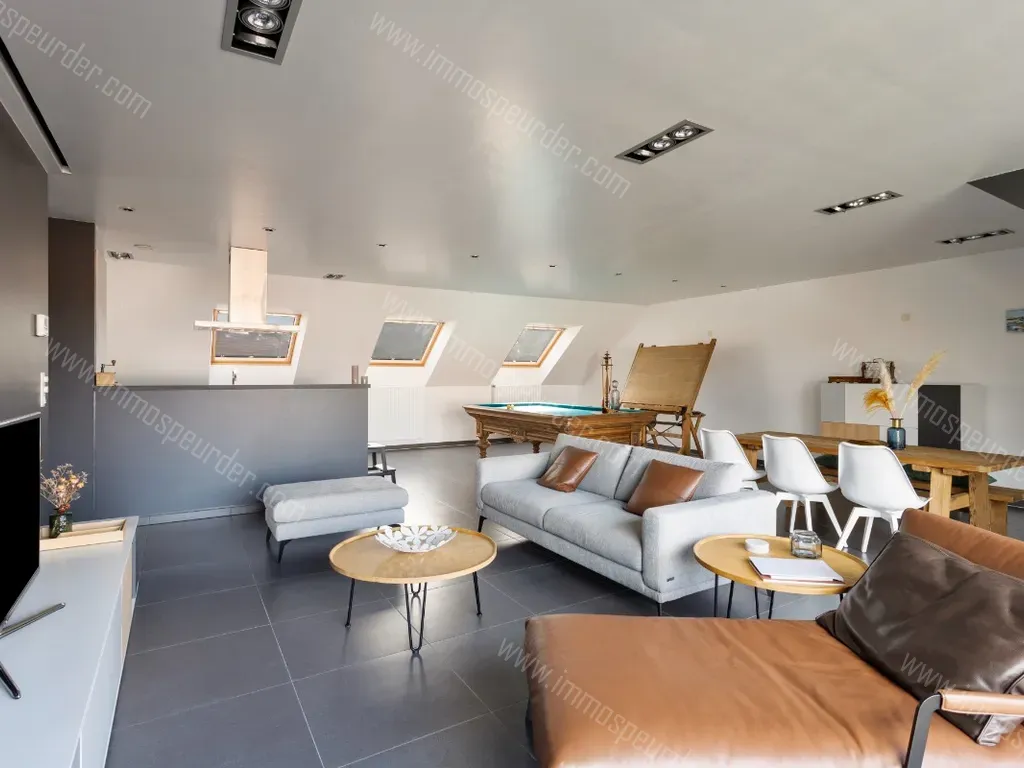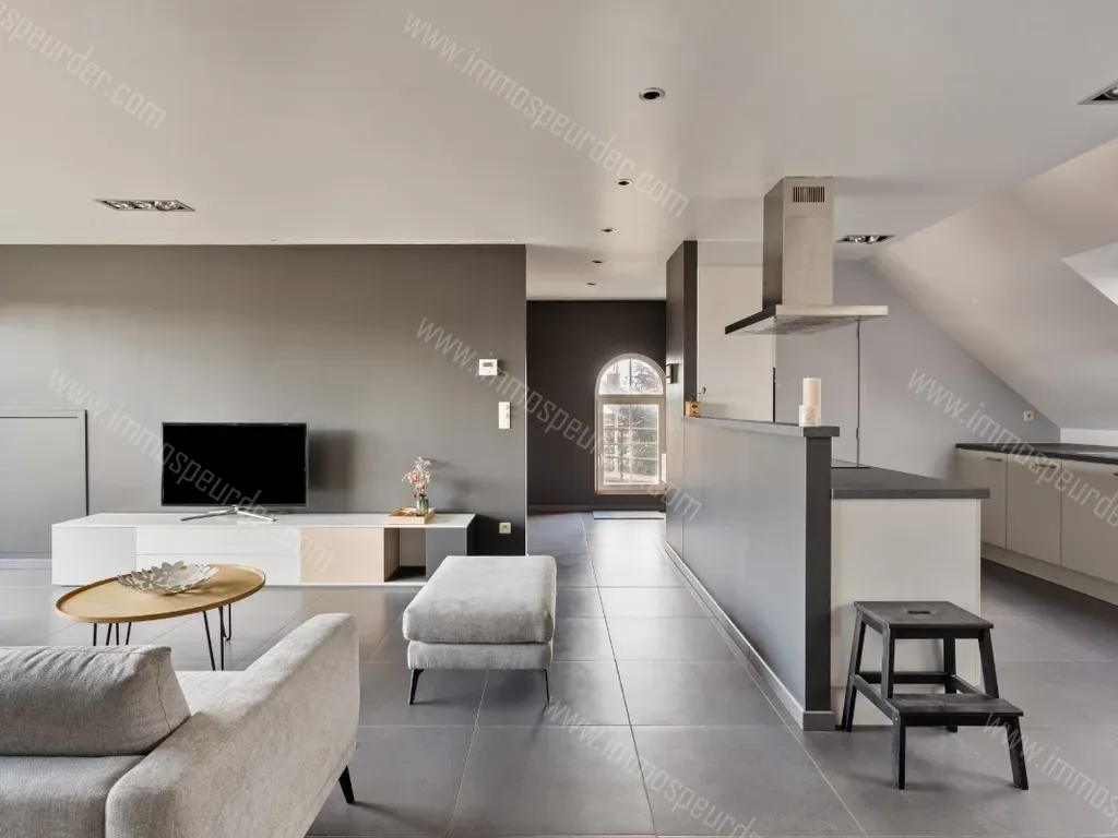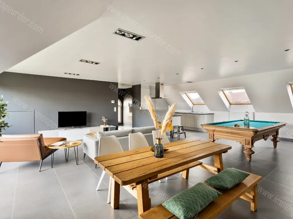 De bovenste verdieping heeft een zeer ruime en lichte leefruimte met de open keuken. Via de schuifdeur kan u het terras betreden. Bij de keuken bevindt zich nog een aparte bergruimte en er is ook nog een apart toilet op deze verdieping.
