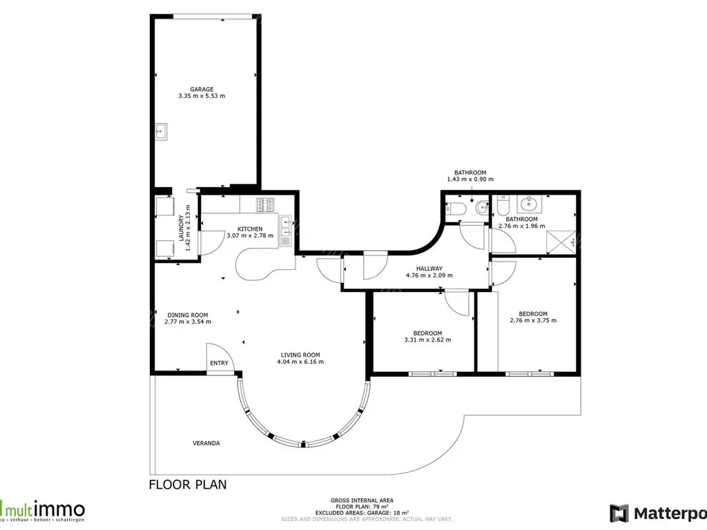 Garage 3,4m x 5,5m = 18,5m² ( tegels )