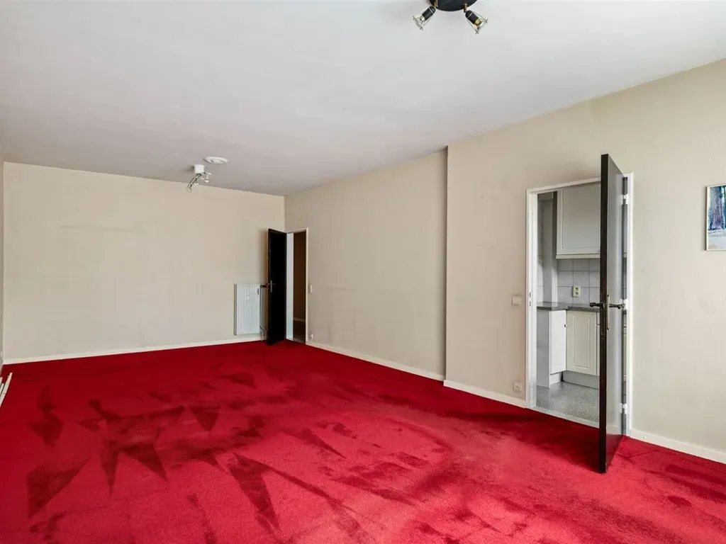 Indeling: inkomhal met gastentoilet, ruime leefkamer ca. 34m2 op vast tapijt, ingerichte keuken met enkele toestellen, 2 ruime slaapkamers achteraan (ca. 13m2/9m2) met aansluitend terras, badkamer met ligbad, berging.