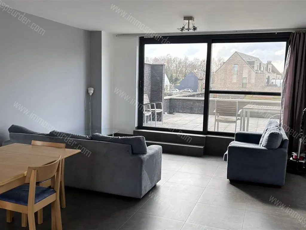 1e Verd. : Eigen inkomdeur met trap naar de ruime lichte leefruimte met open volledig ingerichte keuken (inductievuur, dampkap, vaatwasmachine, koelkast met diepvriesgedeelte, heteluchtoven, micro-golfoven, dubbele spoeltafel). Apart wc (hangtoilet) met handenwasser.