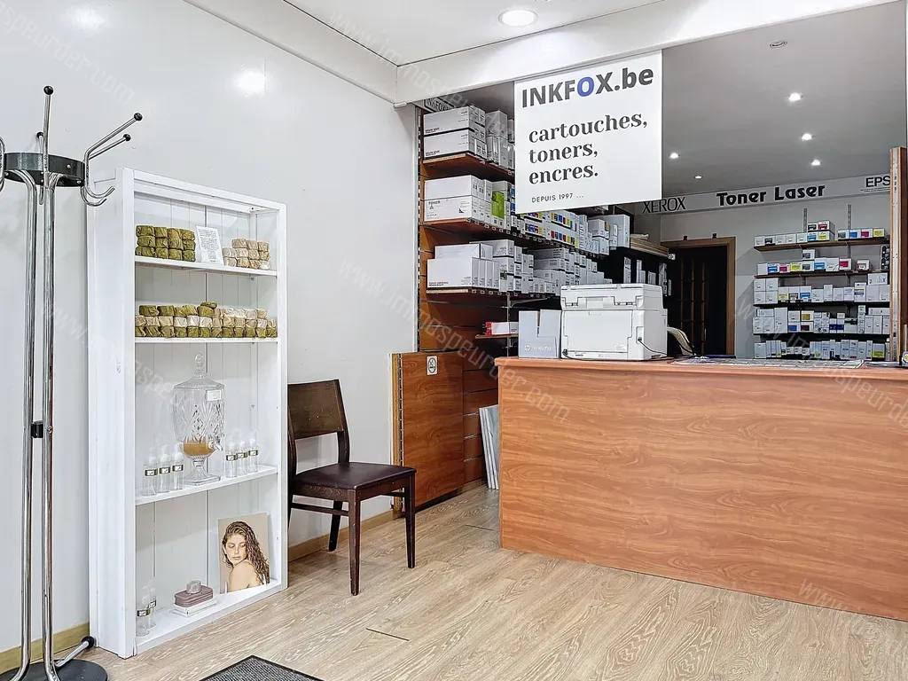 Rez-de-chaussée : Bijouterie à gauche de l'immeuble et un magasin d'encre pour photocopieuse à droite.
