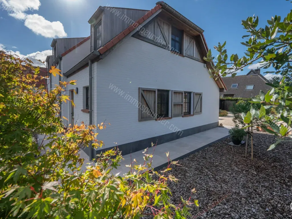 Leliedreef 2 - 8300 Knokke-Heist - Recente villa uit 2023 is gelegen op een perceel van maar liefst 900 m² gelegen in een oase van rust en privacy. De gevel combineert moderne elegantie met klassieke charme, wat de woning een uniek karakter geeft. Met oog voor detail ontworpen, straalt deze villa sereniteit en harmonie uit. Grote raampartijen zorgen voor overvloedig natuurlijk licht en een prachtig uitzicht op de fraai aangelegde tuin – een plek die uitnodigt tot ontspanning enDe villa is ingedeeld in verschillende sfeervolle leefruimtes, elk met een hoog niveau van afwerking in een kenmerkende, landelijke stijl. Deze stijl sluit perfect aan bij het hedendaagse wooncomfort en moderne technieken, waardoor een unieke balans ontstaat tussen traditionele charme en eigentijds gemak. Via de open inkomhal heeft u toegang tot een gastentoilet en een eerste ruime slaapkamer met aangrenzende badkamer, uitgerust met ligbad, dubbele wastafel en toilet. Op de begane grond bevindt zich verder een gezellige open leefkeuken met hoogwaardige SMEG-apparatuur, een wasplaats, een lichte woonkamer met toegang tot de tuin en een extra ruime berging. Op de eerste verdieping zijn drie ruime slaapkamers te vinden, waarvan één momenteel als dressing wordt gebruikt, evenals een volledig uitgeruste badkamer met ligbad, douche, wastafel en toilet. De zuidelijk georiënteerde tuin, met fraai aangelegd terras en overdekt eiken terras die tevens kan worden geïntegreerd in de leefruimte biedt het hele jaar door extra comfort en gezelligheid. Hier kunt u genieten van een uitzonderlijke leefomgeving. De extra garage biedt ruimte voor een grote wagen en kan ook dienst doen als werkruimte of opslagplaats. Het eigendom wordt aangevuld met een bijgebouw dat een douchekamer, keuken, woonkamer en slaapkamer bevat.