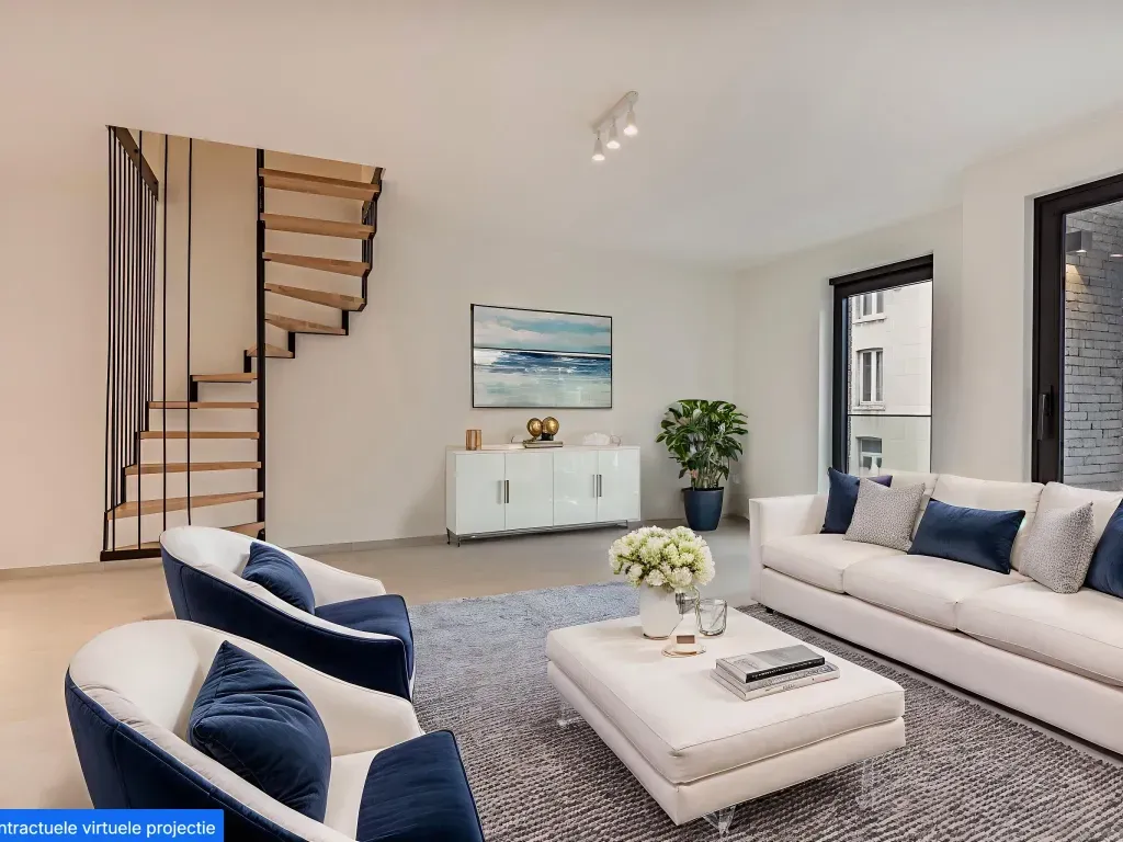 Rue Herkoliers - Herkoliersstraat 79-bus-3 - 1081 Koekelberg - Optioneel: Parking €33.000 Kelder +€8.000 Ontdek de perfecte combinatie van modern comfort en een toplocatie met dit exclusieve nieuwbouw duplex appartement in Koekelberg. Dit is één van de slechts vier hoogwaardige wooneenheden in dit kleinschalige project, strategisch gelegen op een steenworp afstand van de metrohalte Simonis (Lijnen 2 en 6), diverse bus- en tramverbindingen, het schitterende Elisabethpark en de Place Henri Vanhuffel. Dit ruime duplex appartement met 3 slaapkamers werd ontworpen met de grootste zorg voor zowel esthetiek als energie-efficiëntie. Het beantwoordt aan de strengste normen dankzij de installatie van drievoudig en dubbel glas, vloerverwarming via Viessmann-technologie, en de aanwezigheid van zonnepanelen voor de gemeenschappelijke delen. Kopers genieten hier van een zorgeloos bezit, want enkel hoogwaardige materialen en afwerkingen werden geselecteerd. Denk aan topmerken zoals Miele, AEG, Zanussi en Viessmann. De veiligheid is gegarandeerd met een geblindeerde voordeur en videofoon. Het appartement zelf bestaat uit een lichtrijke, ruime leefruimte met een volledig ingerichte open keuken, die directe toegang biedt tot een privaat terras of balkon. De indeling voorziet in drie goed geproportioneerde slaapkamers, waaronder een master bedroom en-suite compleet met een eigen bad- of douchekamer. Deze AI-visualisaties zijn bedoeld als inspiratie. Er werd geen rekening gehouden met technische specificaties, stedenbouwkundige voorschriften of de concrete mogelijkheden tot realisatie.