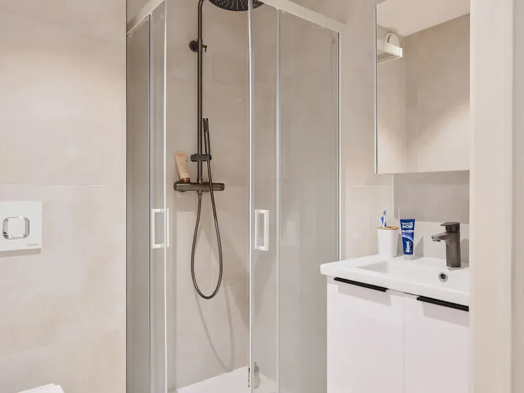 Mechelsestraat 59-61/102 - 3000 Leuven - Deze charmante en volledig gerenoveerde studentenkamer is gelegen op een absolute toplocatie, pal aan de Vismarkt.