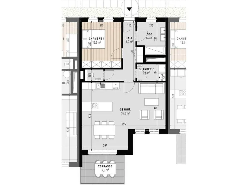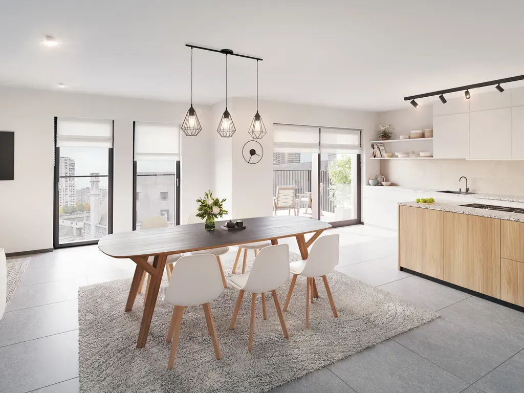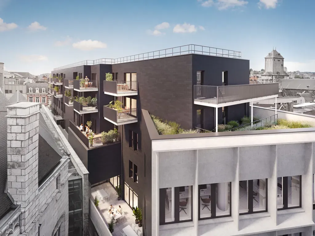 Adossée à la Grand Poste, ne manquez pas cette nouvelle Résidence de standing perchée au 4e et 5e étages de ce nouvel immeuble. 12 appartements (2 appartements 1ch - 6 appartements 2ch et 4 appartements 3 chambres) avec terrasses exposées sud-est ! Plus précisément, vous trouverez ce bel appartement situé au 4e étage. Il se compose d'un grand hall d'entrée avec espace vestiaire et toilette, d'un beau séjour avec espace cuisine ouverte avec accès à la terrasse exposée sud-est, d'une chambre, d'une salle de douches ainsi que d'une buanderie. PEB A, DV alu REYNAERS, chauffage sol par pompe à chaleur DAIKIN, VMC double flux, excellente isolation acoustique pour garantir un confort optimal ! Appartement livré terminé. Cave incluse dans le prix, parking à vélos. Emplacements de parking dans le garage en sous-sol de l'immeuble (en supplément mais sans obligation d'achat) dont certains sont prévus pour accueillir une borne de charge. Livraison septembre 2026. INFOS et VISITES : 0475/62.10.62