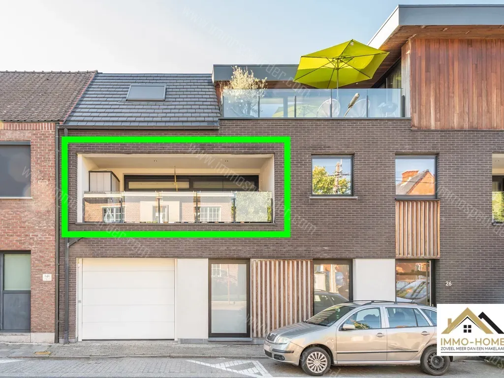 Fraterstraat 26-103 - 9820 Merelbeke - Dit prachtige duplex appartement ligt op de eerste verdieping van een recent complex. Je bereikt het zowel via de lift als de trap. De eigen inkomhal is voorzien van wandhoge ingemaakte kasten met vestiaire, en hier bevindt zich ook het toilet. Een pivoterende glazen deur brengt je tot in de zeer aangename leefruimte met open keuken. Deze ruimte is voorzien van een tijdloos én onderhoudsvrij spanplafond met ingewerkte verlichting. De wandkast is op maat gemaakt en blijft in het appartement. Via een groot schuifraam kom je op het ruime terras, en als het toch te warm wordt dan zorgt de airco voor afkoeling. Op de bovenste verdieping bevinden zich de twee slaapkamers met ingemaakte kasten en de badkamer met een riante inloopdouche. Achteraan het complex beschik je over een bijzonder ruime garage, waar plaats is voor maar liefst drie wagens. Er is eveneens een collectieve overdekte staanplaats voor fietsen en de afvalcontainers voorzien. Inschrijvingen via mail naar tommy@immo-home.be, geen telefonische inschrijvingen! Volg ons op Fb en insta. Voor meer info: www.immo-home.be. GRATIS schatting