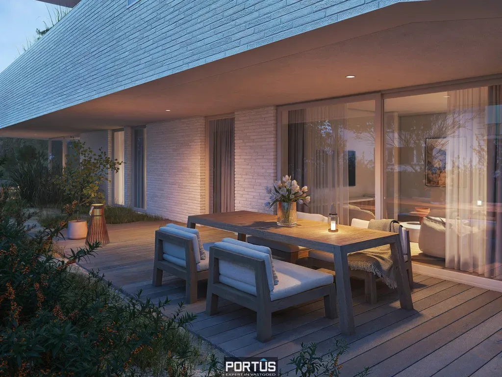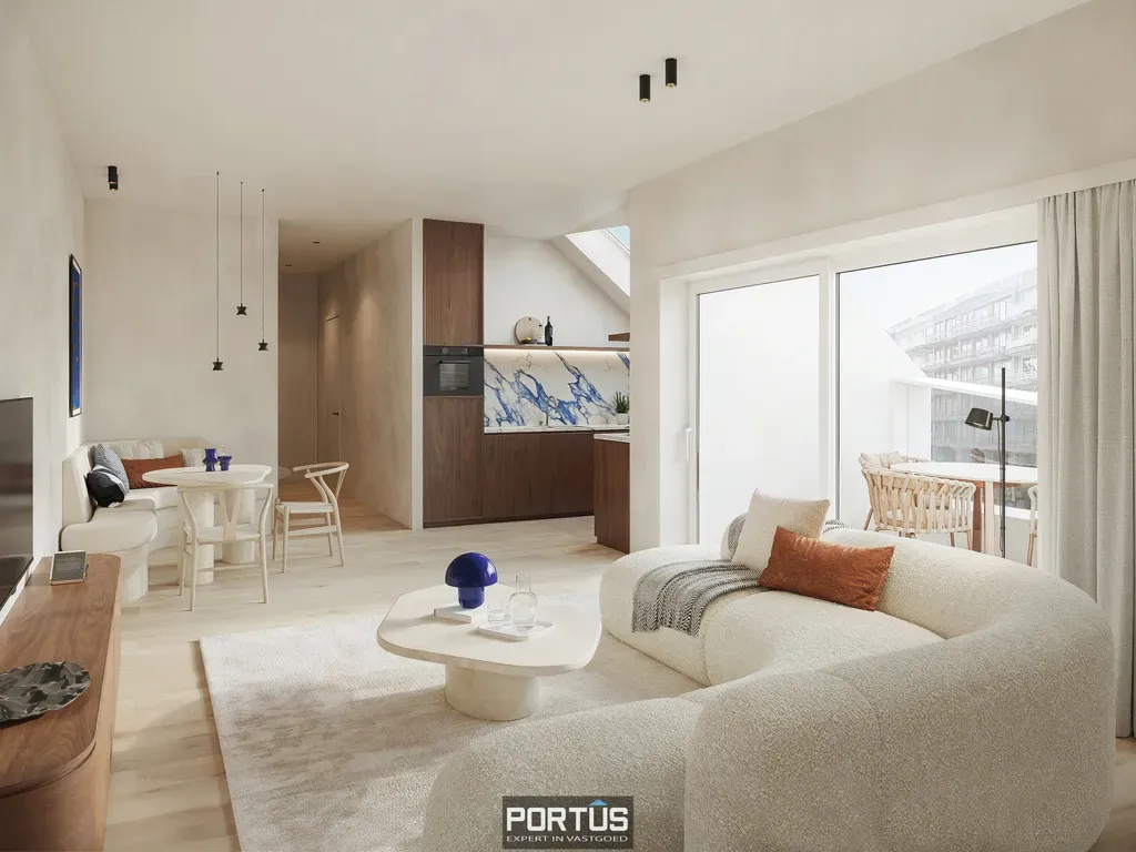 Elisalaan 24 - 8620 Nieuwpoort - Residentie LeWitt is een exclusieve residentie bestaande uit 12 moderne appartementen met grote terrassen, veel licht en ruimte gelegen op een toplocatie in het hart van Nieuwpoort-Bad vlakbij de Zeedijk en op wandelafstand van de lokale winkels en restaurants. Dit appartement is gelegen op de tweede verdieping en omvat een mooie lichtrijke leefruimte met open keuken en uitgevend op een groot en zonnig terras zowel aan voor- als achterkant van de residentie, 2 ruime slaapkamers, aparte berging, apart toilet en een badkamer met inloopdouche en lavabo. Eigen afwerking mogelijk. Verder zijn er in de kelderverdieping voldoende garages en privé bergingen beschikbaar en is er een ruimte voor fietsen. Interesse? Contacteer Portus Vastgoed Nieuwpoort 058/62.50.50