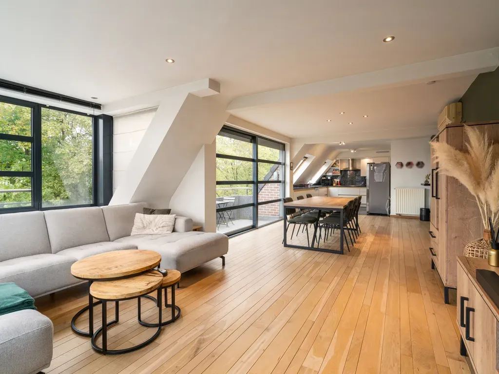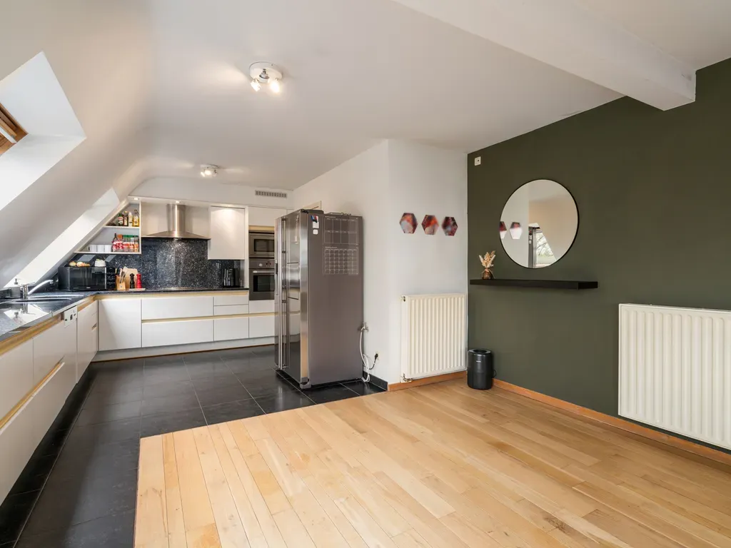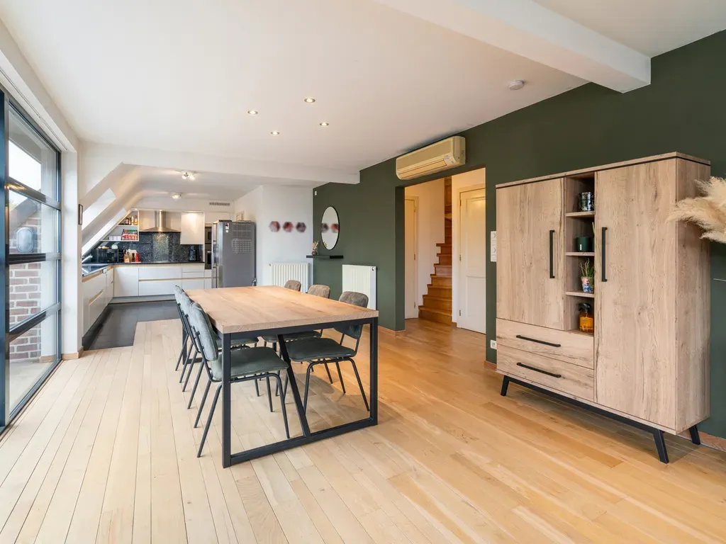 Vaartweg 13 - 9400 Ninove - Deze stijlvolle penthouse bevindt zich op de derde en vierde verdieping en is toegankelijk via lift en trap. Op de eerste verdieping vind je een inkomhal met apart toilet, een lichtrijke woonkamer en een volledig uitgeruste keuken met een aansluitende berging. Daarnaast is er een slaapkamer aanwezig met rechtstreekse toegang tot de vernieuwde badkamer. De tweede verdieping omvat twee ruime slaapkamers, een badkamer met lavabo en ligbad, een praktische wasruimte, een apart toilet en een ruim zonneterras waar je in alle rust kan genieten. Een afgesloten garagebox kan worden aangekocht voor €30.000. Deze penthouse combineert een moderne afwerking met een uitstekende ligging in het hart van Ninove, op wandelafstand van winkels, scholen en openbaar vervoer. EPC: 198 kWh/m² Label: B. Wenst u meer info of een bezoek? Stuur gerust een mail naar of geef me een seintje op